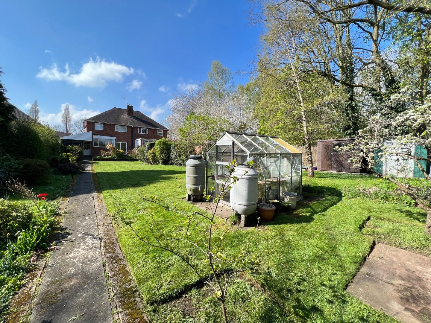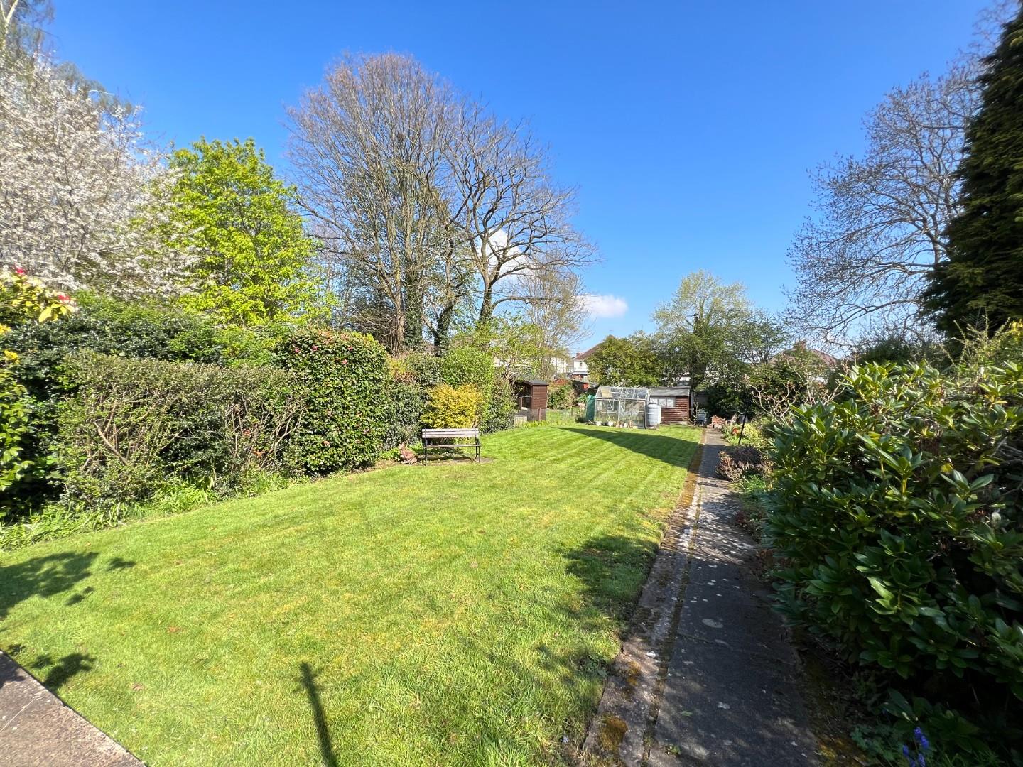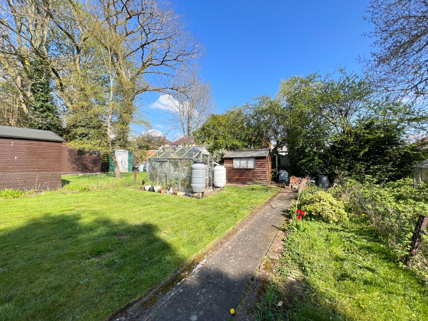 With a range of plants, large lawn area and outdoor W/C with storage buildings