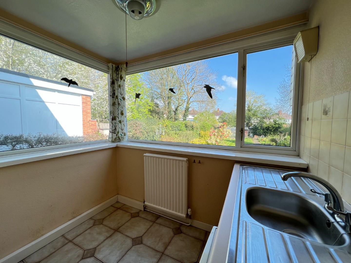 With a range of wall and floor mounted units, central heating radiator and windows to rear and side elevation