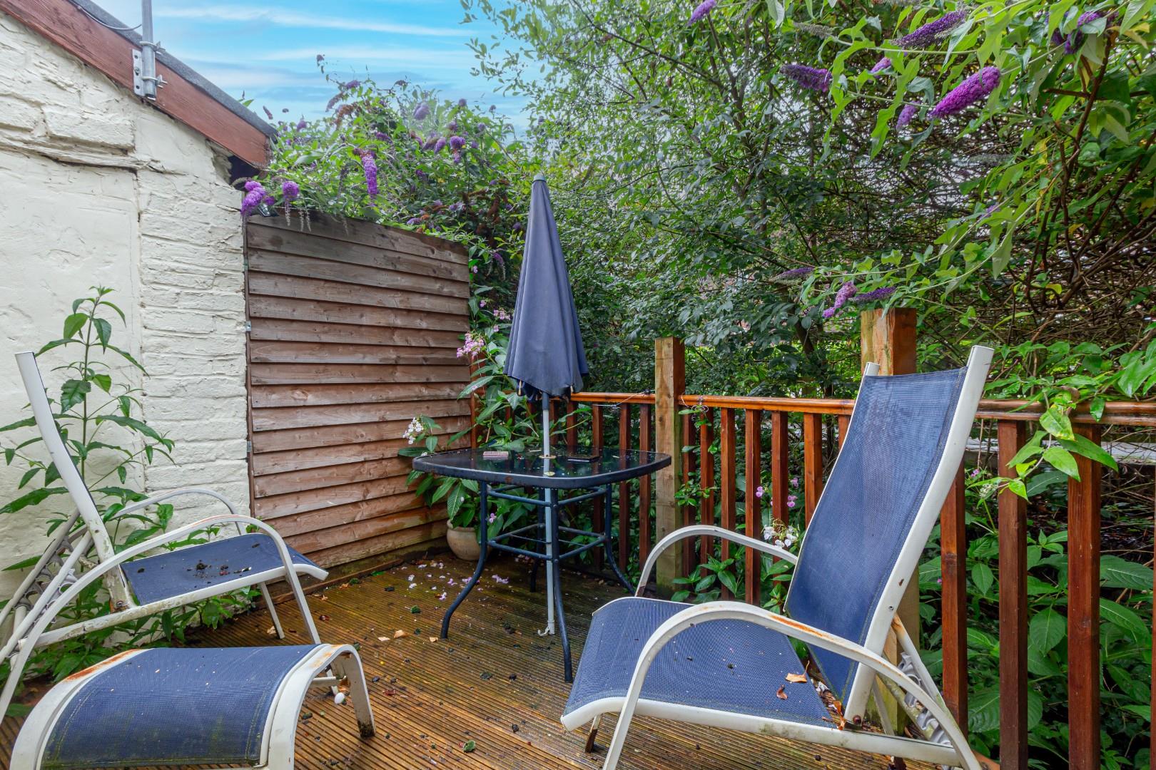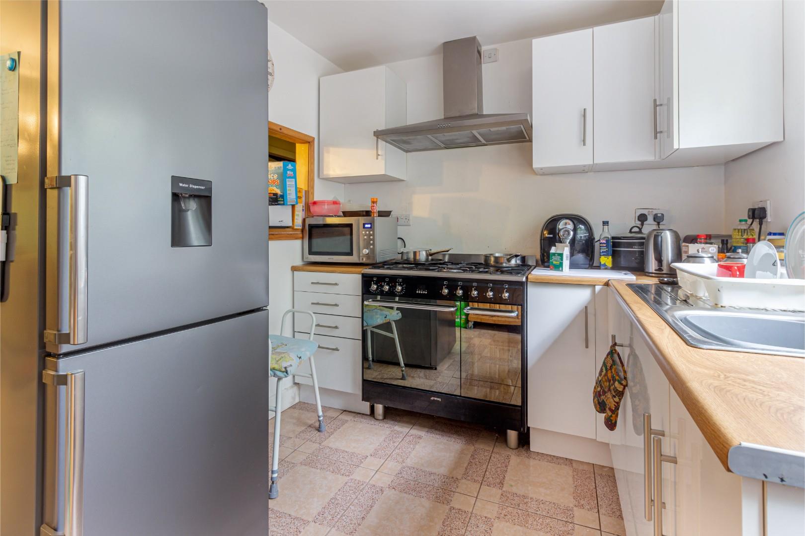 With a range of wall and floor mounted cupboards, double glazed window to rear, doorway access to suspended decking area to rear