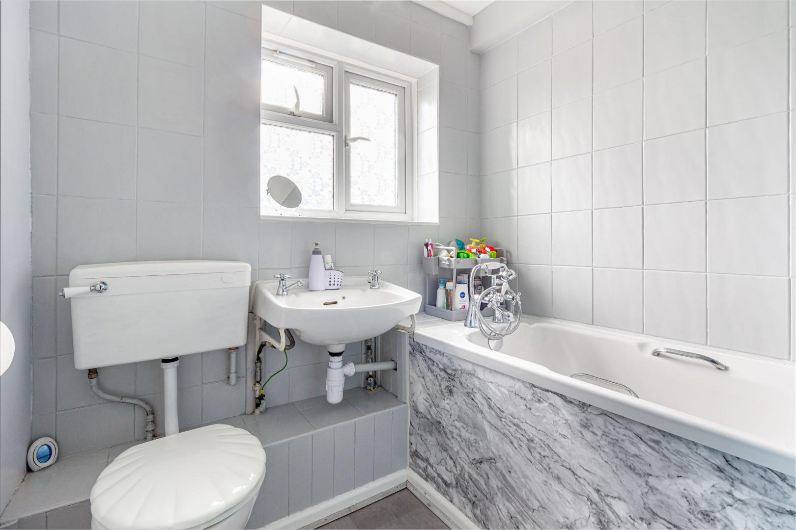 With double glazed window to rear, W/C and bath with shower over
