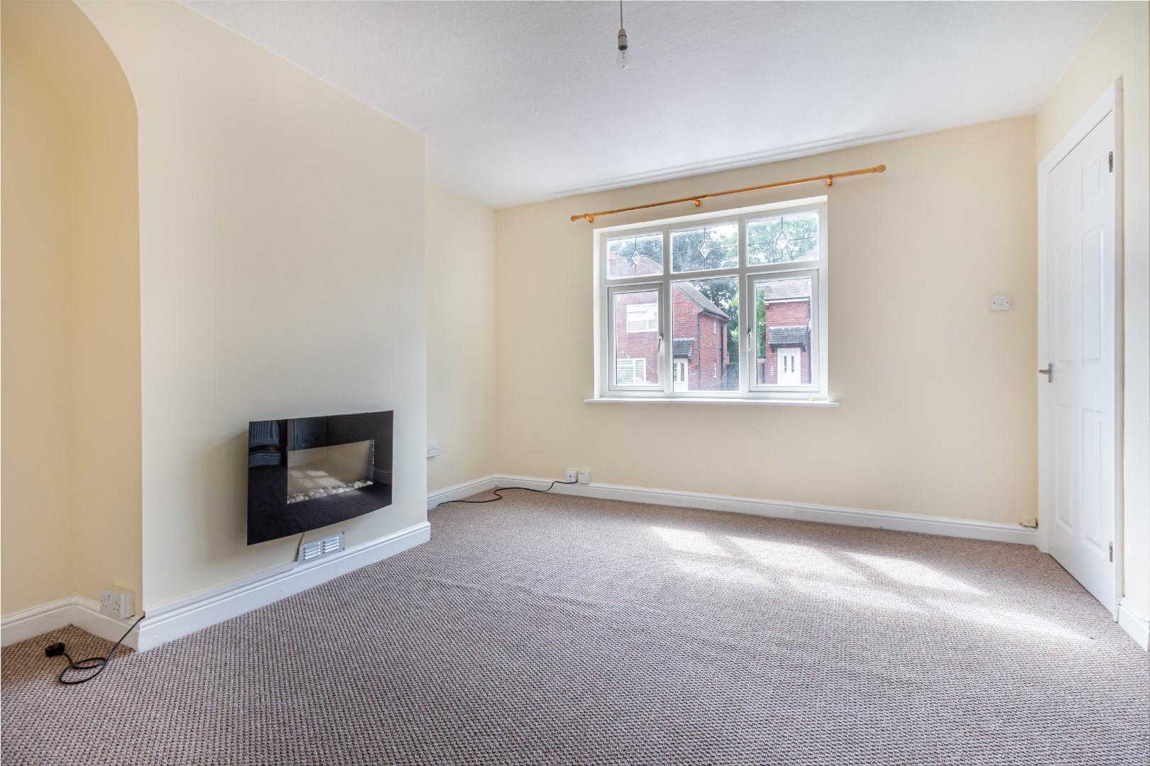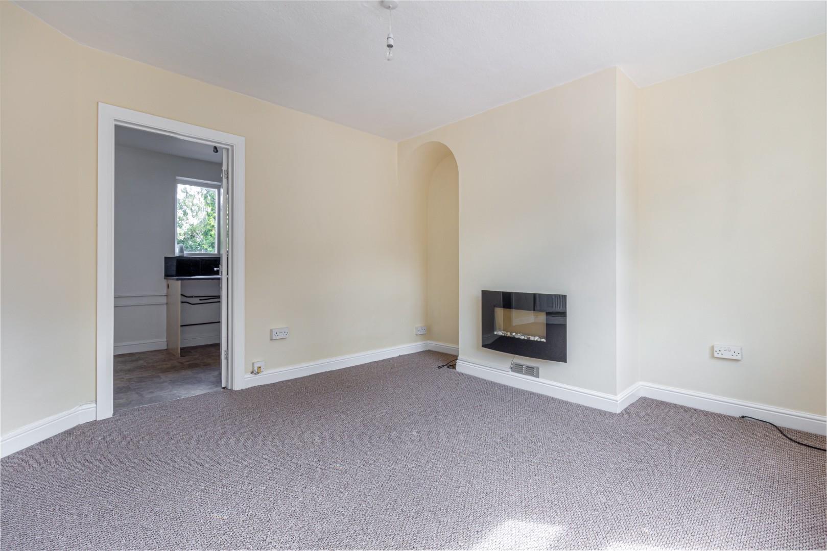 With doorway access to kitchen, central heating radiator, decorative fireplace and window to front