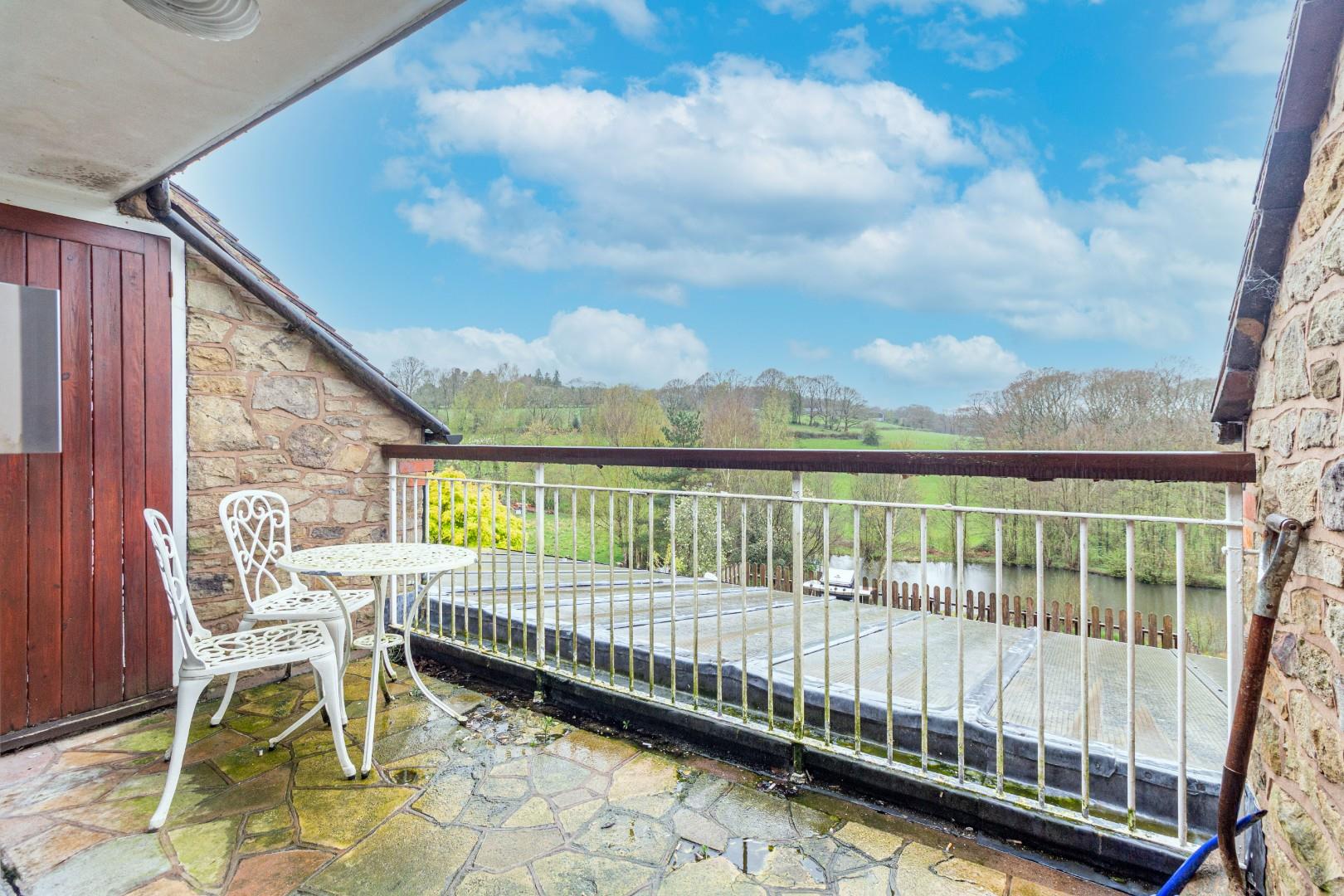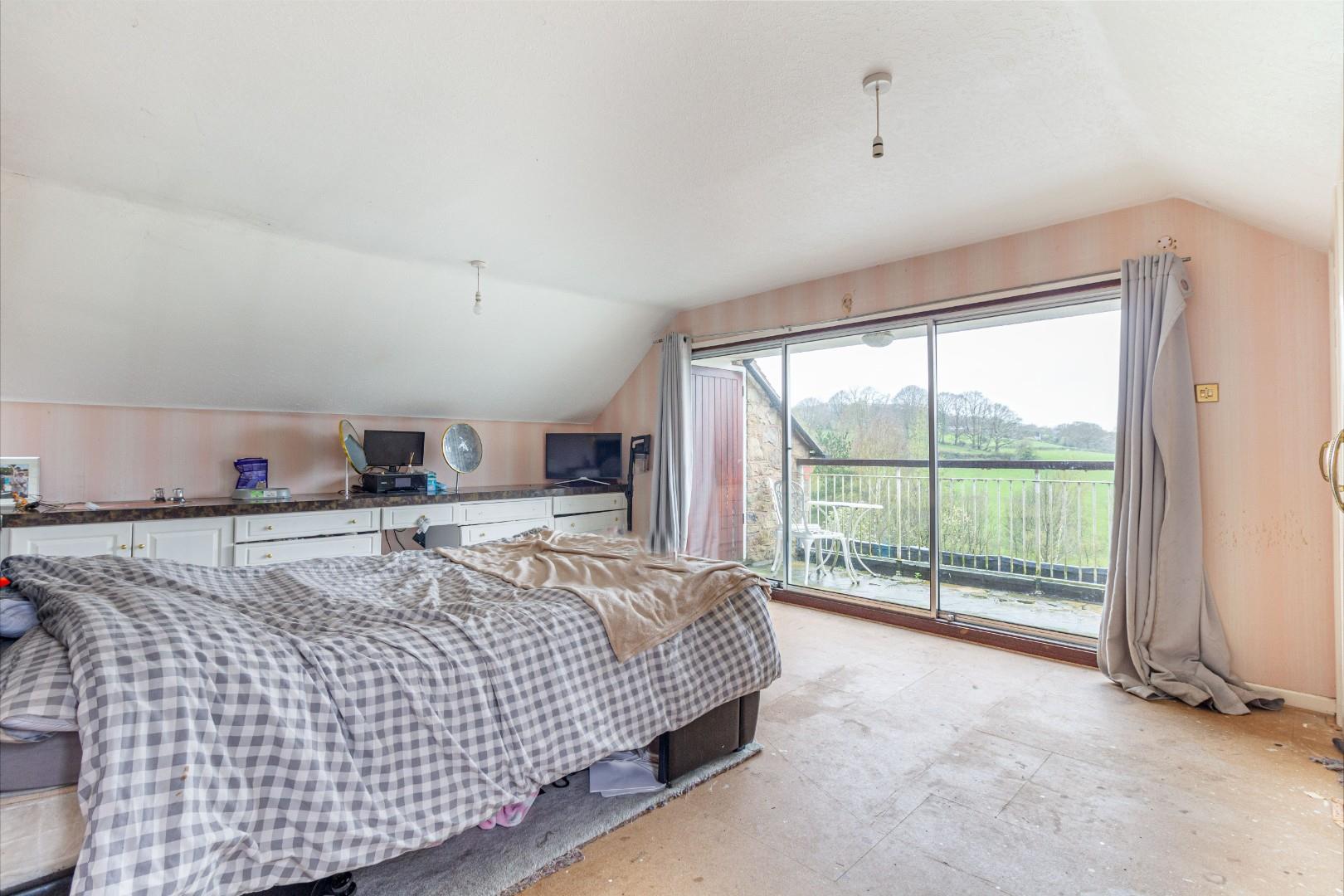 With a door leading from bedroom one, panoramic views across the garden and beyond, doorway access to additional storage area