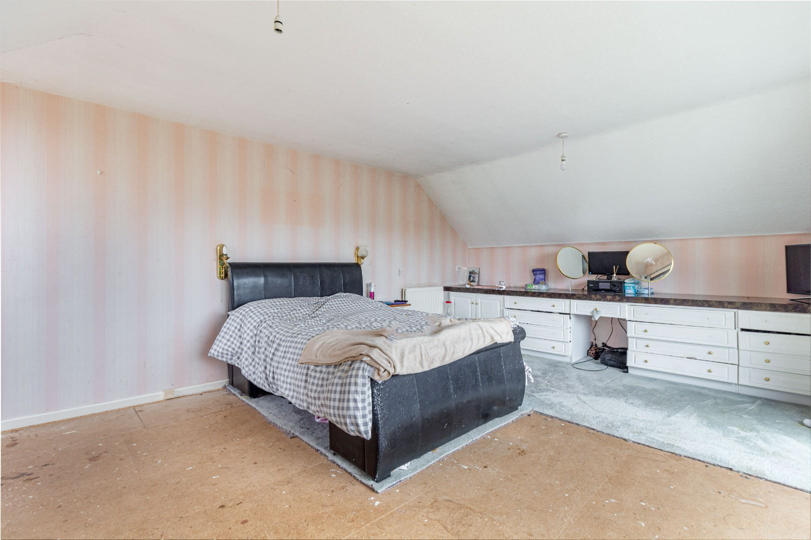 With a door leading from the landing, built in wardrobe, window to the front and a central heating radiator