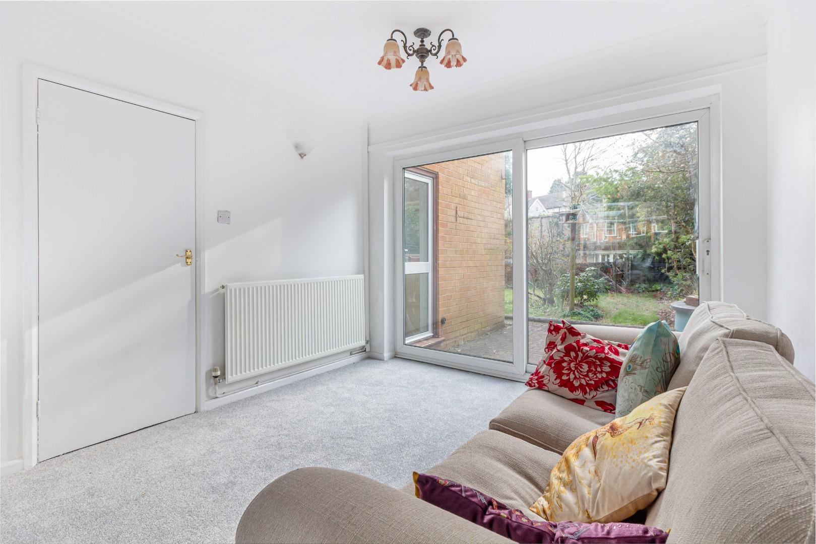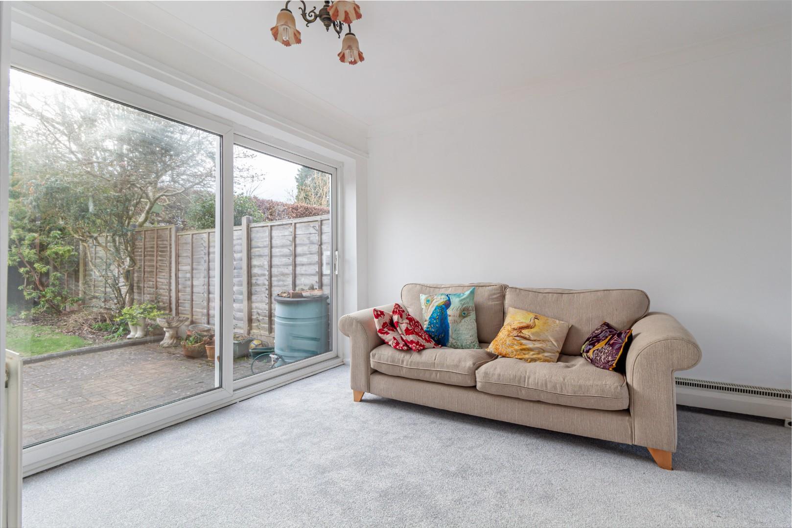 With a door leading to the kitchen, open access to the lounge, double glazed sliding patio doors to the rear garden and a central heating radiator