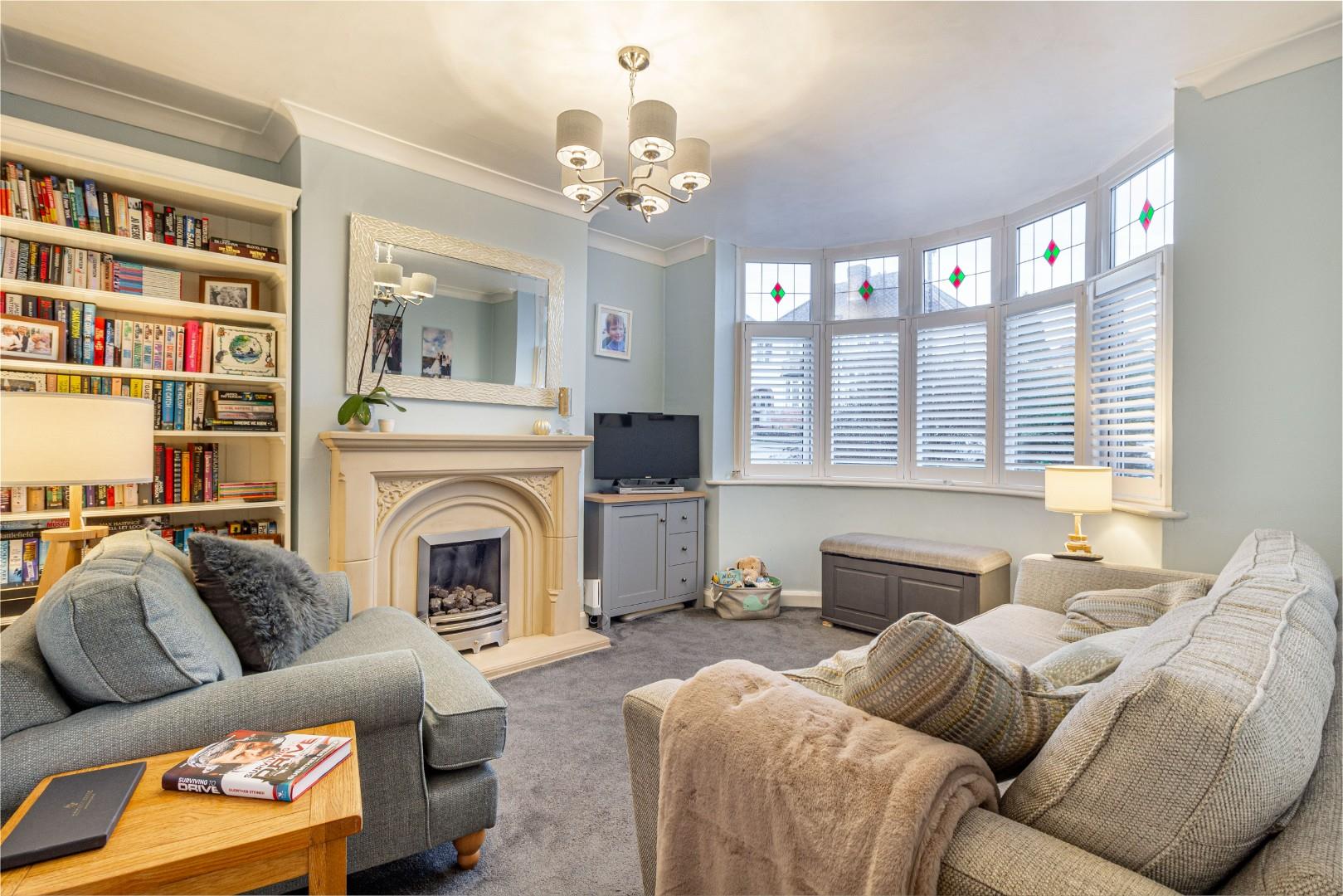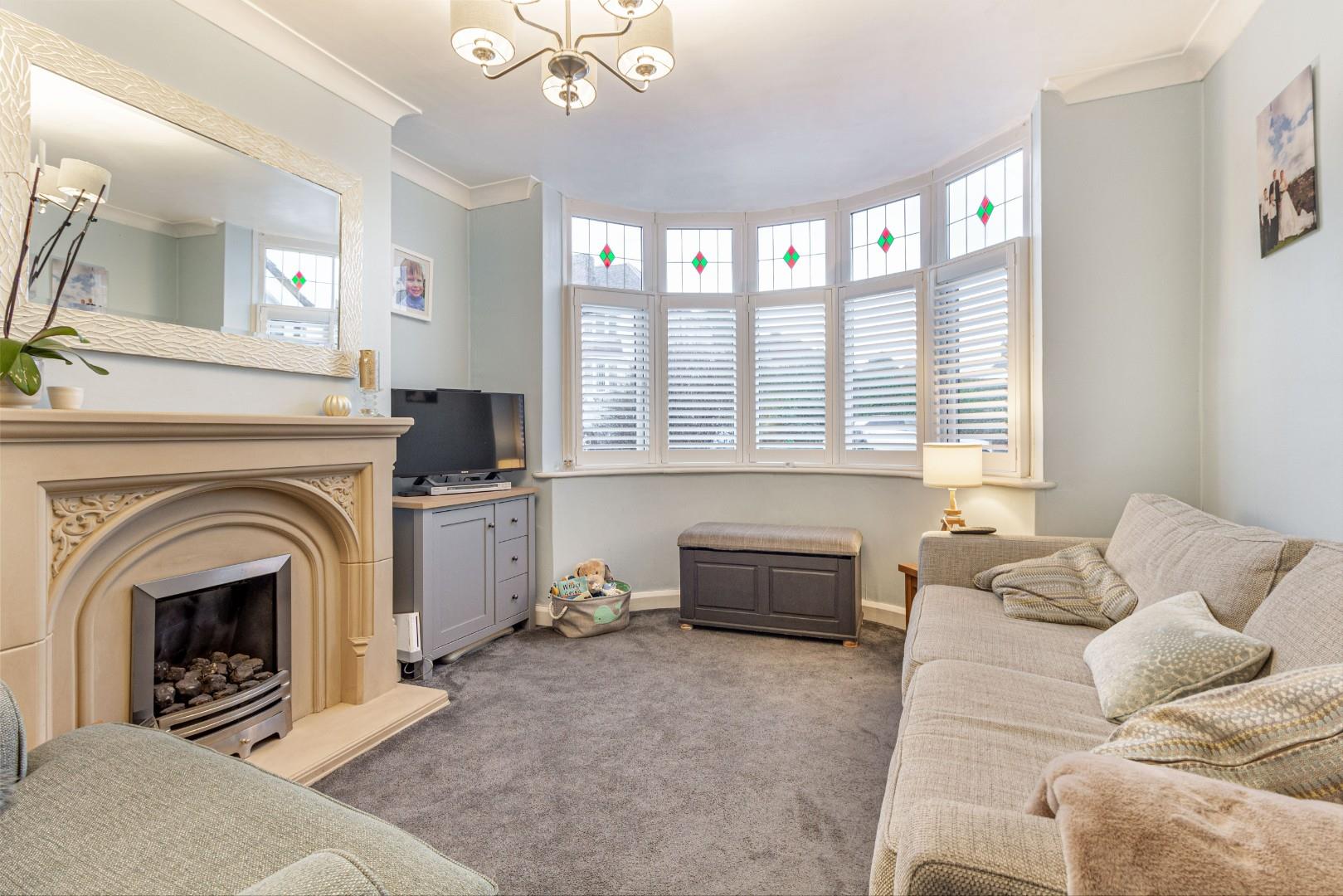 With a door leading from the entrance hall, gas fireplace with decorative surround, a double glazed bay window to the front and a central heating radiator