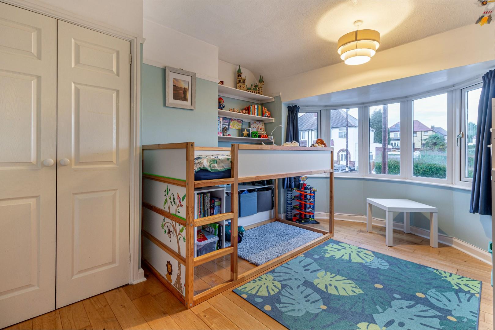 With a door leading from the landing, a built in wardrobe, central heating radiator and a double glazed bay window to the front