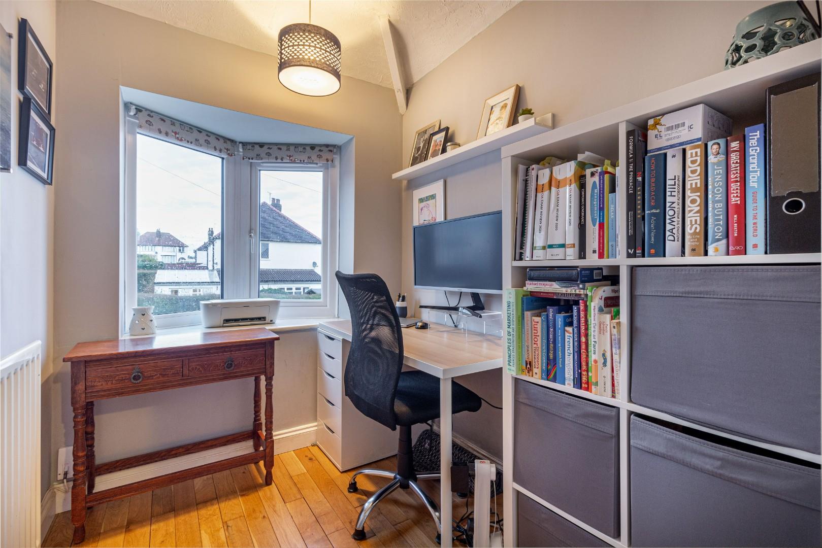 With a door leading from the landing, a central heating radiator and a double glazed bay window to the front
