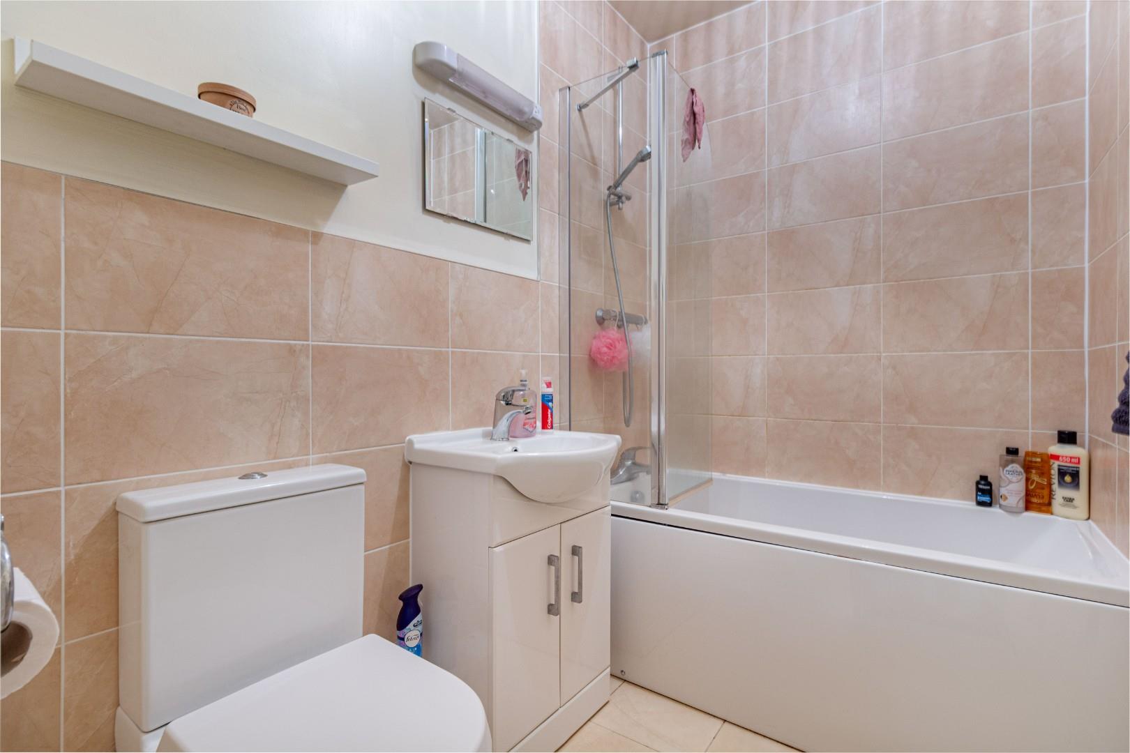 With WC, hand wash basin and bath with shower over