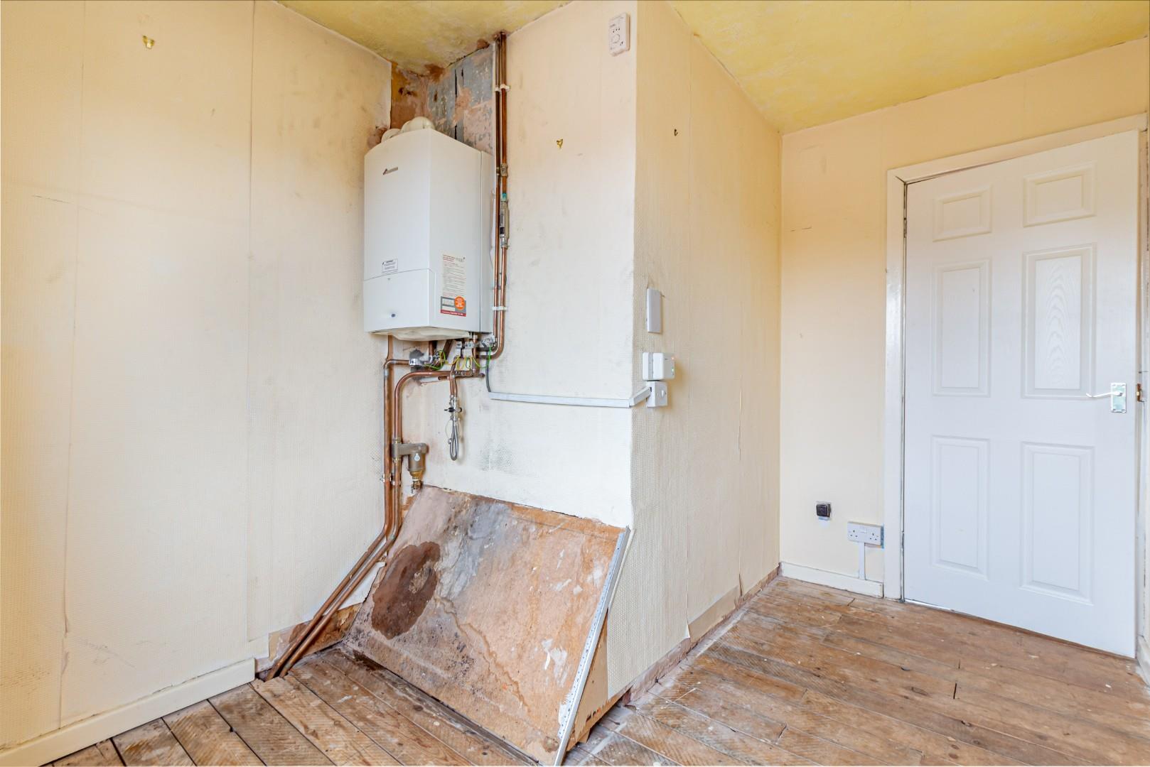 With a door leading from the kitchen, WC with hand wash basin and central heating radiator