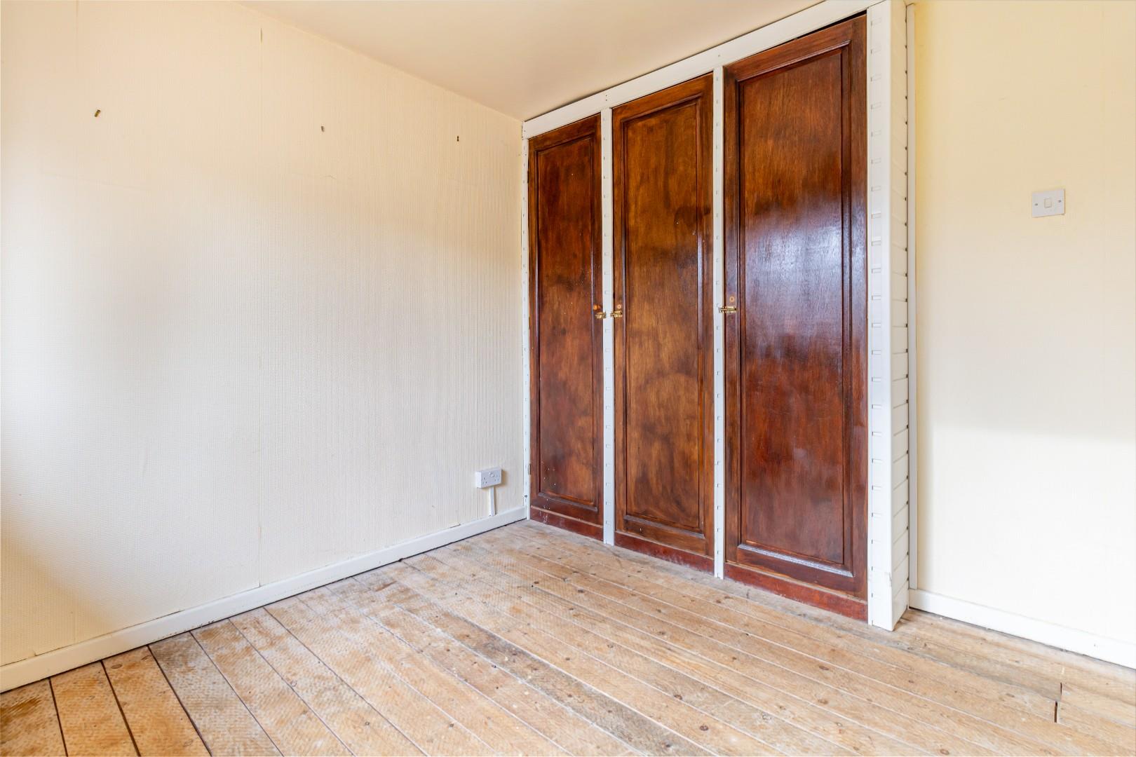 With a door leading from the landing, fitted wardrobes, a double glazed window to the rear and a central heating radiator