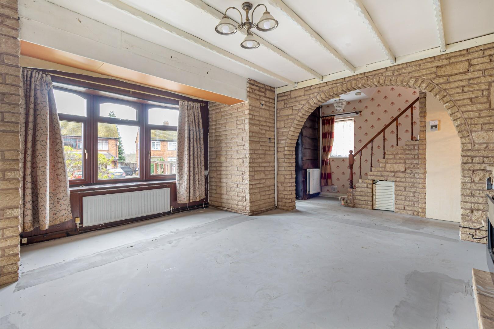 With open archway access from the entrance hall, double glazed bay window to the front, central heating radiator and a fireplace with decorative surround
