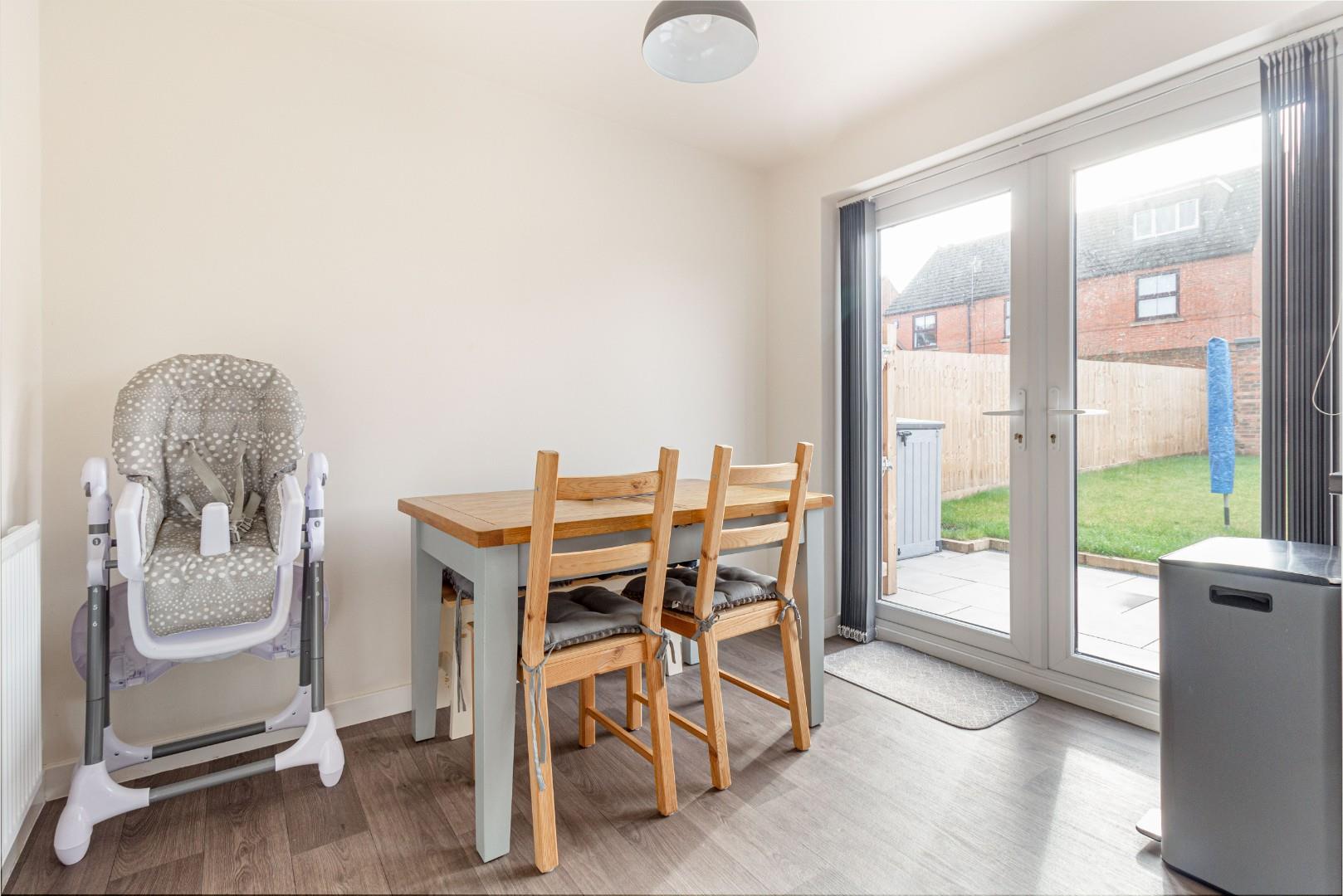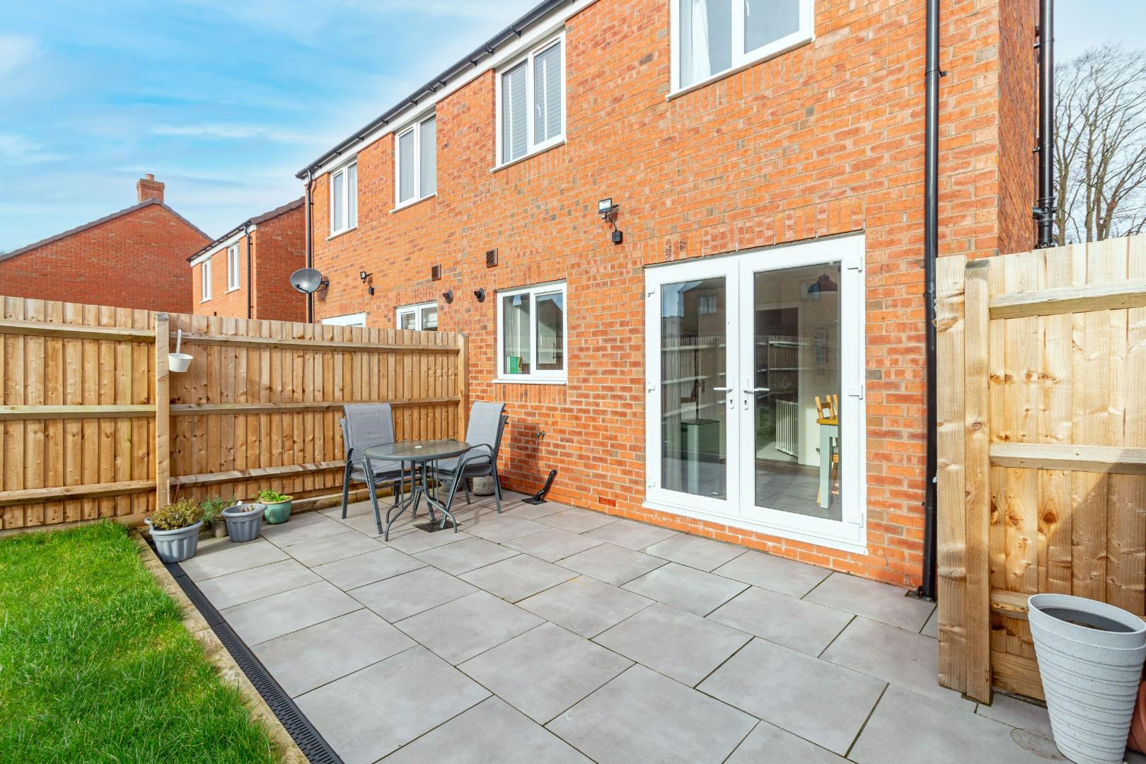 With patio doors leading from the Kitchen / Diner, patio area to front with lawn beyond