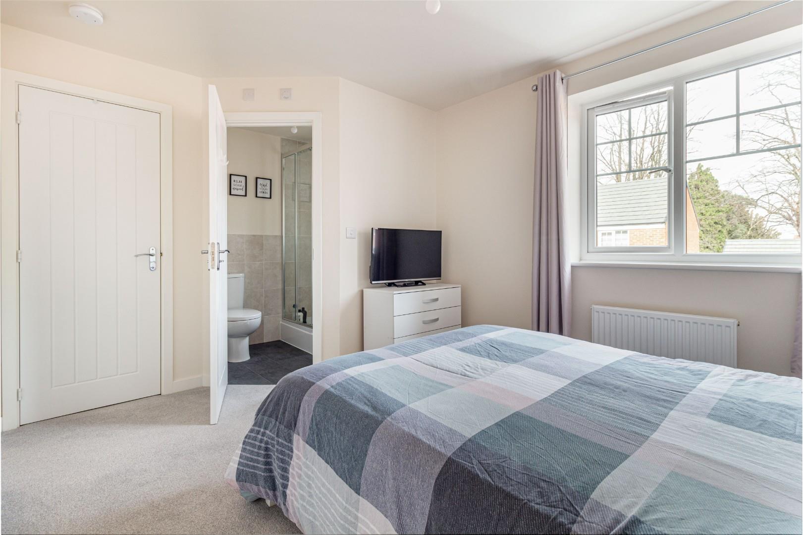 With a door leading from the landing, built in store cupboard, a door leading to the en-suite, double glazed window to the front and a central heating radiator