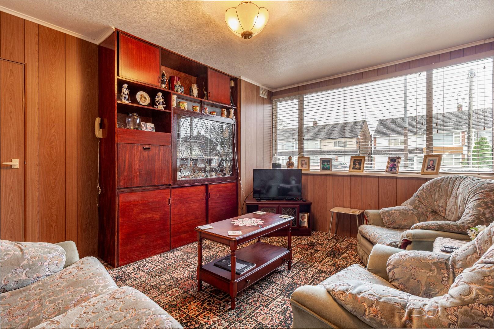 With a door leading from the entrance hall, fitted display storage cabinet, double glazed window to the front and a central heating radiator