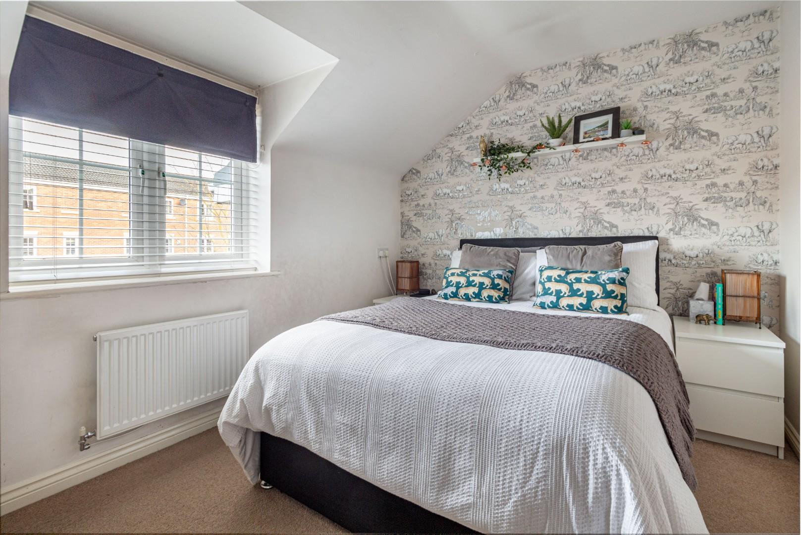 With a door leading from the landing, double glazed window to front, space for wardrobes and a central heating radiator.