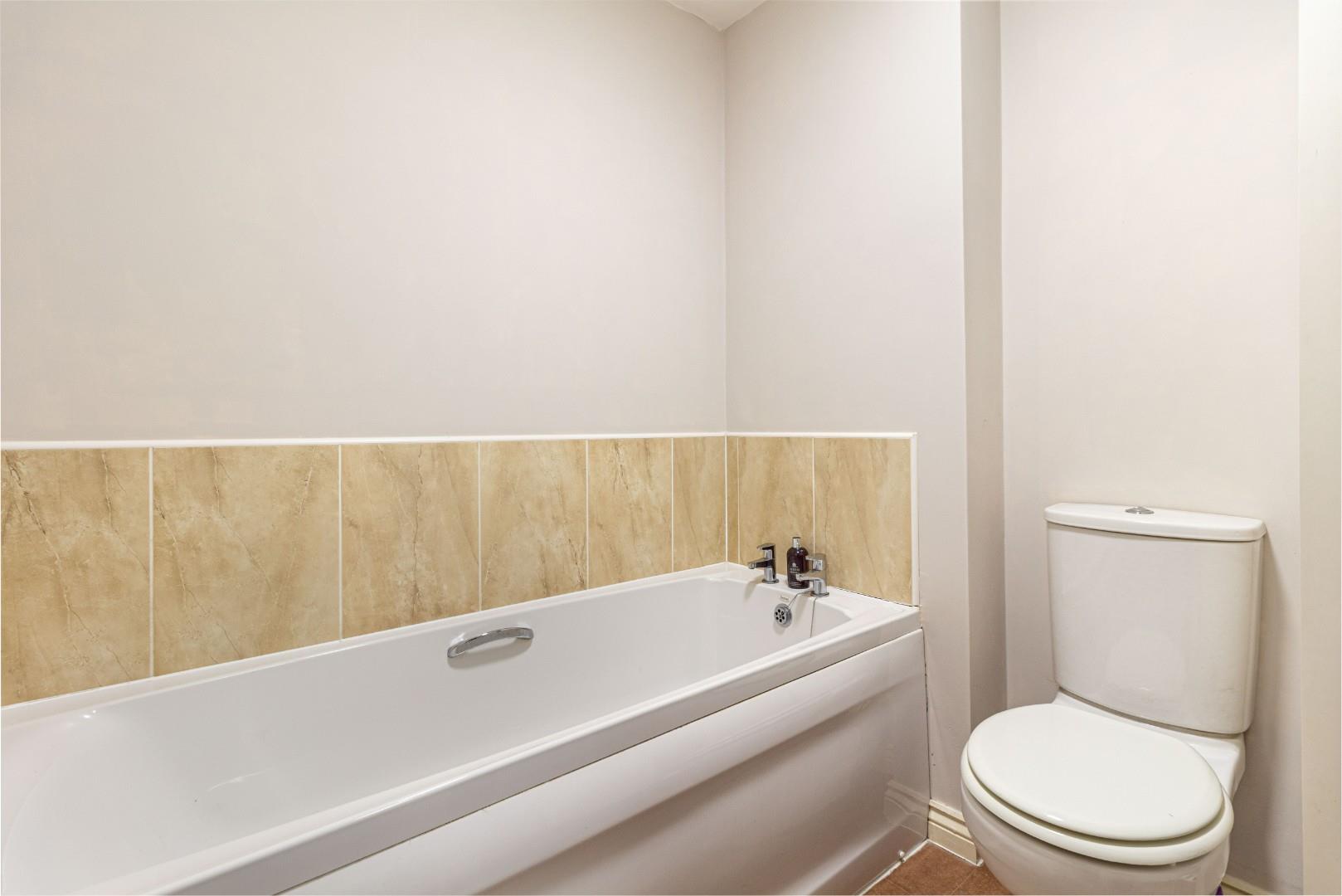 With a door leading from the landing, WC, wash hand basin with tiled splash back, bath unit with tiled surround, extractor fan and a central heating radiator.