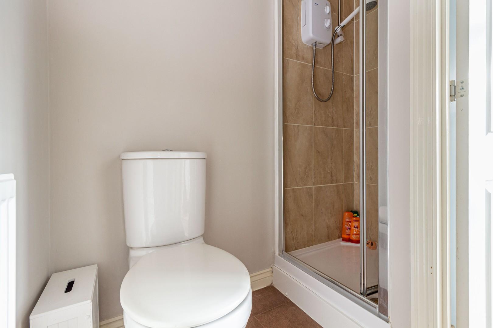 With a door leading from bedroom one, wash hand basin with tiled splash back, WC, shower cubicle, extractor and a central heating radiator.