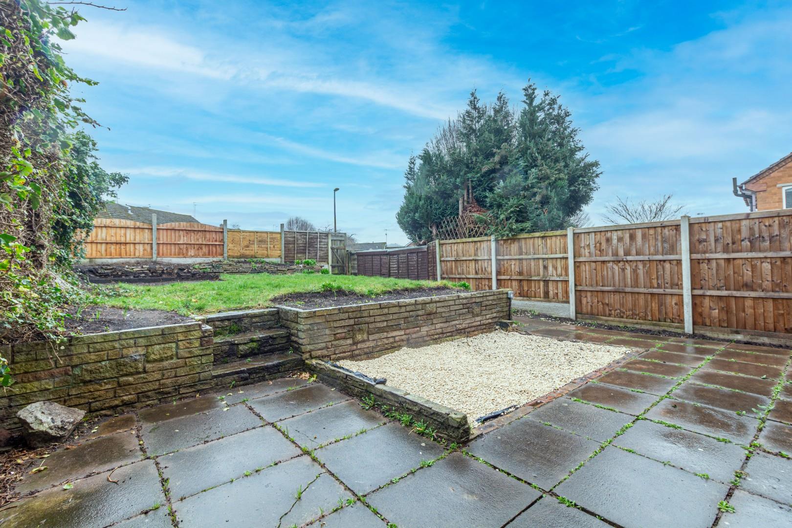 With a door leading from the rear lobby, patio with lawn beyond, rear access gate and additional side access gate to the front driveway