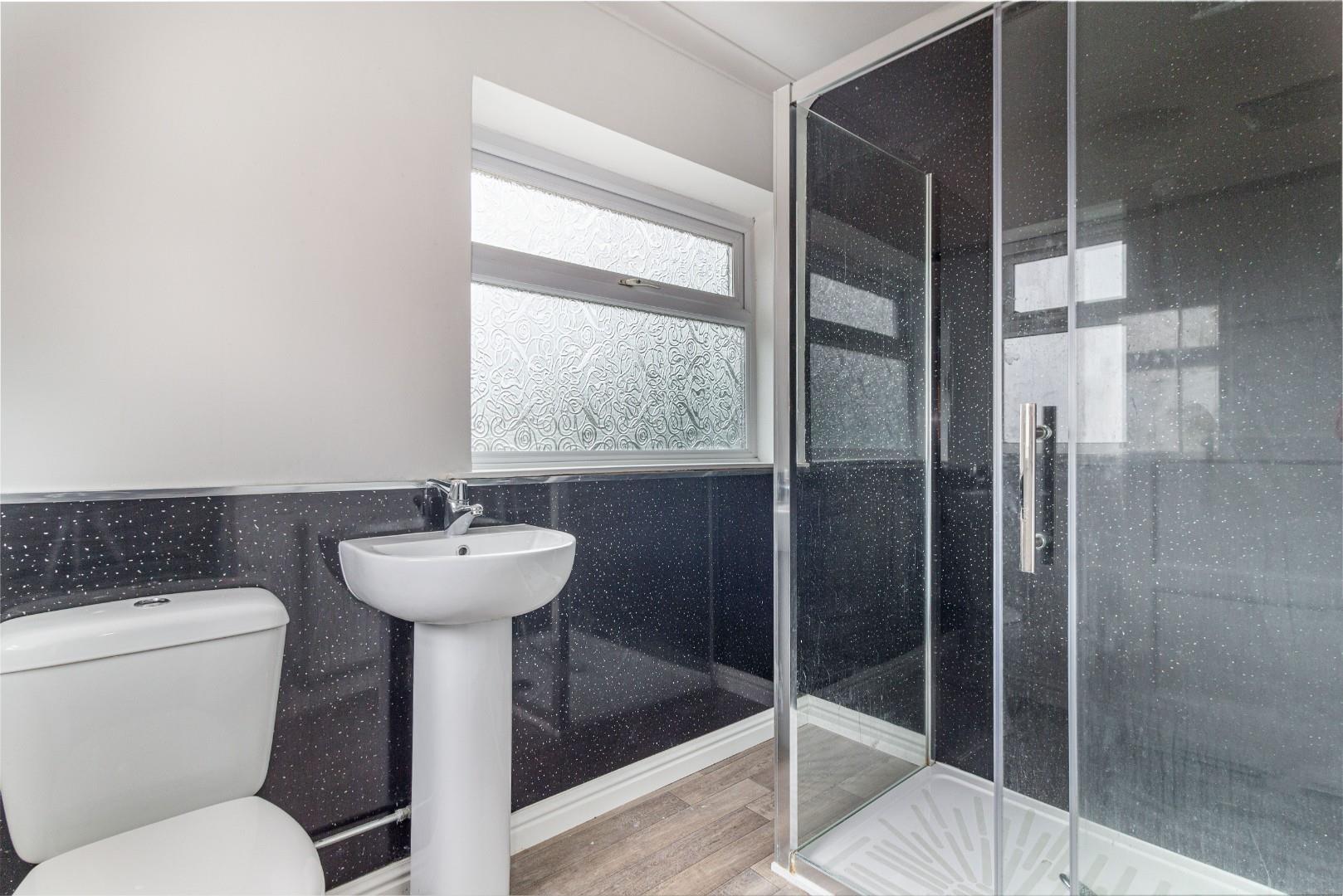 With a door leading from the landing, WC, hand wash basin, shower cubicle with aquaboard surround, a central heating radiator and a double glazed window to the rear
