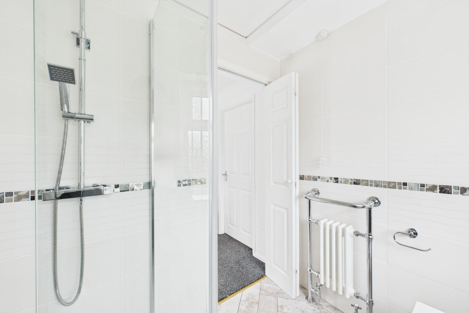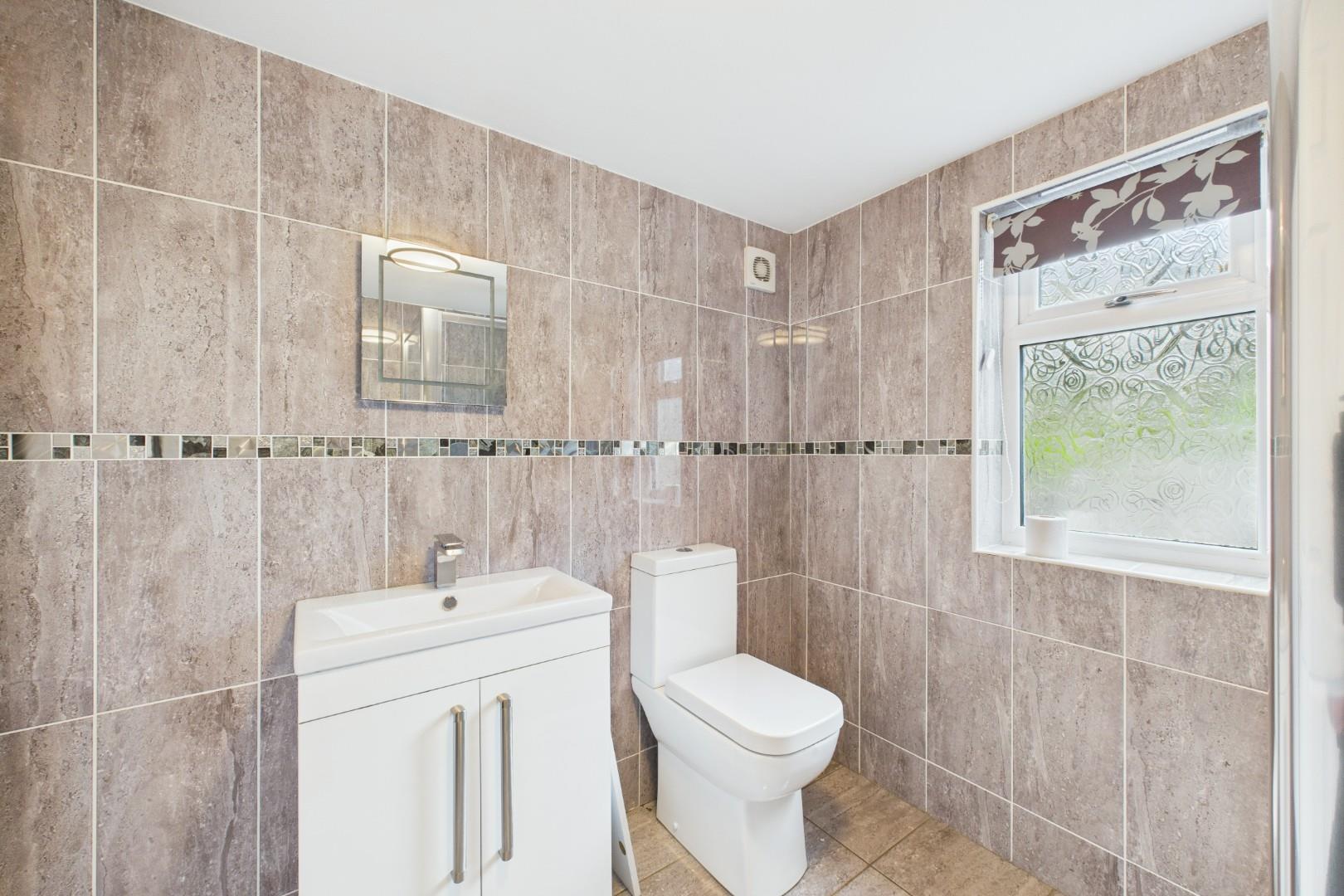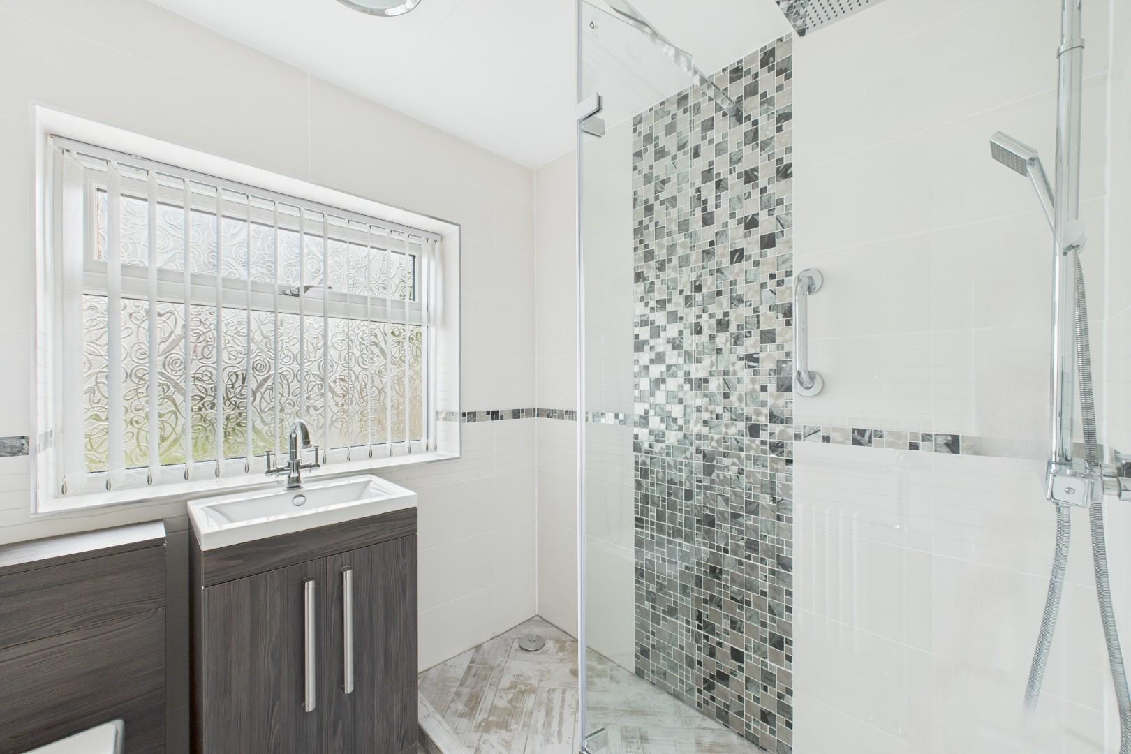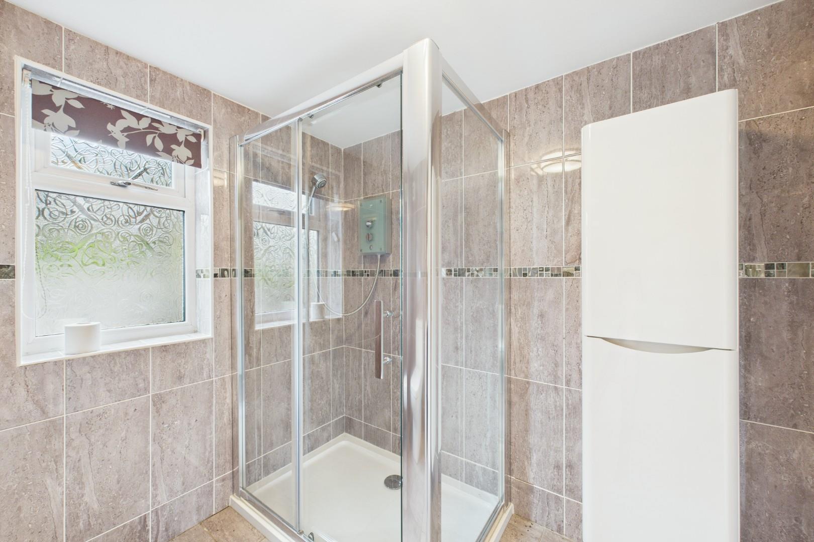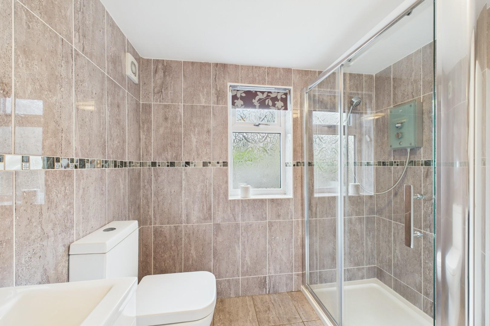 Double glazed window to the rear, shower cubicle, WC, wash hand basin, central heating radiator.