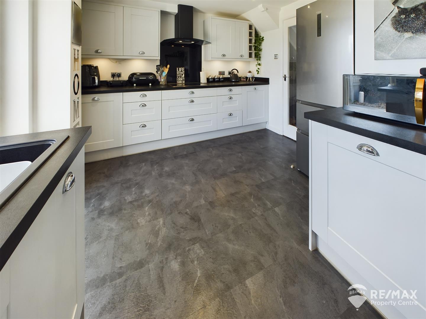 Fitted with a modern range of wall and base units, built in cooker, induction hob and extraction hood, under cupboard lighting, built in wine rack, ceramic sink & drainer, integrated waste bin, cupboard housing combi boiler (newly fitted in 2023), with window to rear aspect and back door leading to the rear garden and patio area