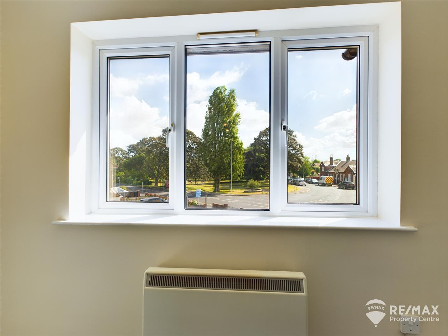 With window overlooking the Pavilion Green to front aspect, wall mounted electric heater and opening to kitchen area