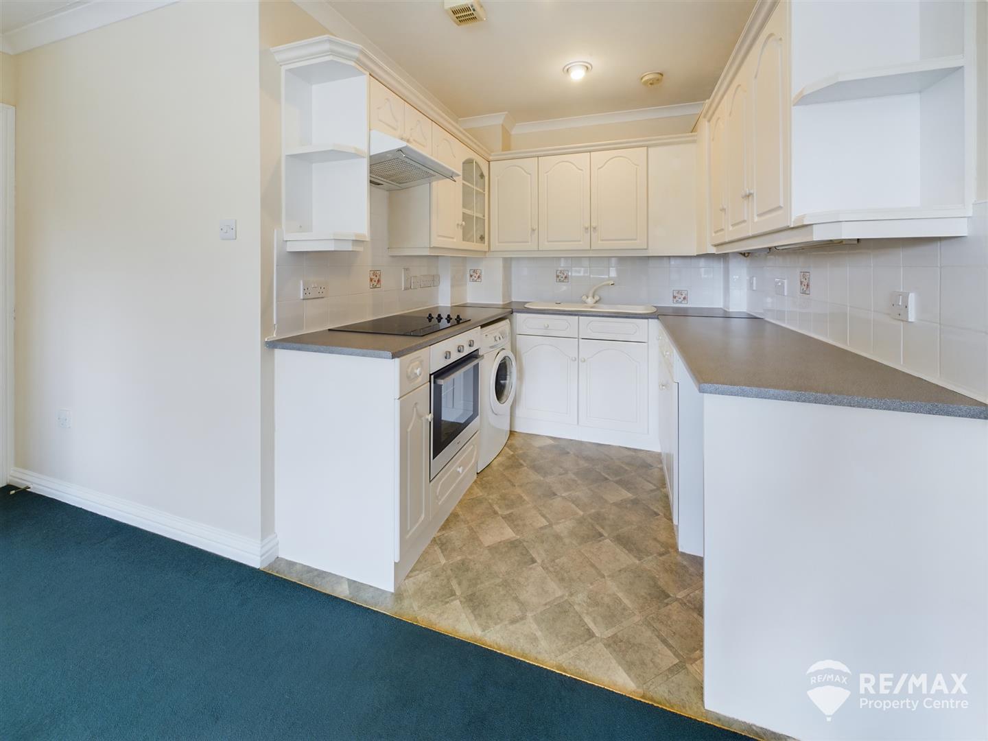 Fitted with a modern range of wall and base units, ceramic sink/drainer, built in electric oven, hob & extractor hood, plumbing for washing machine