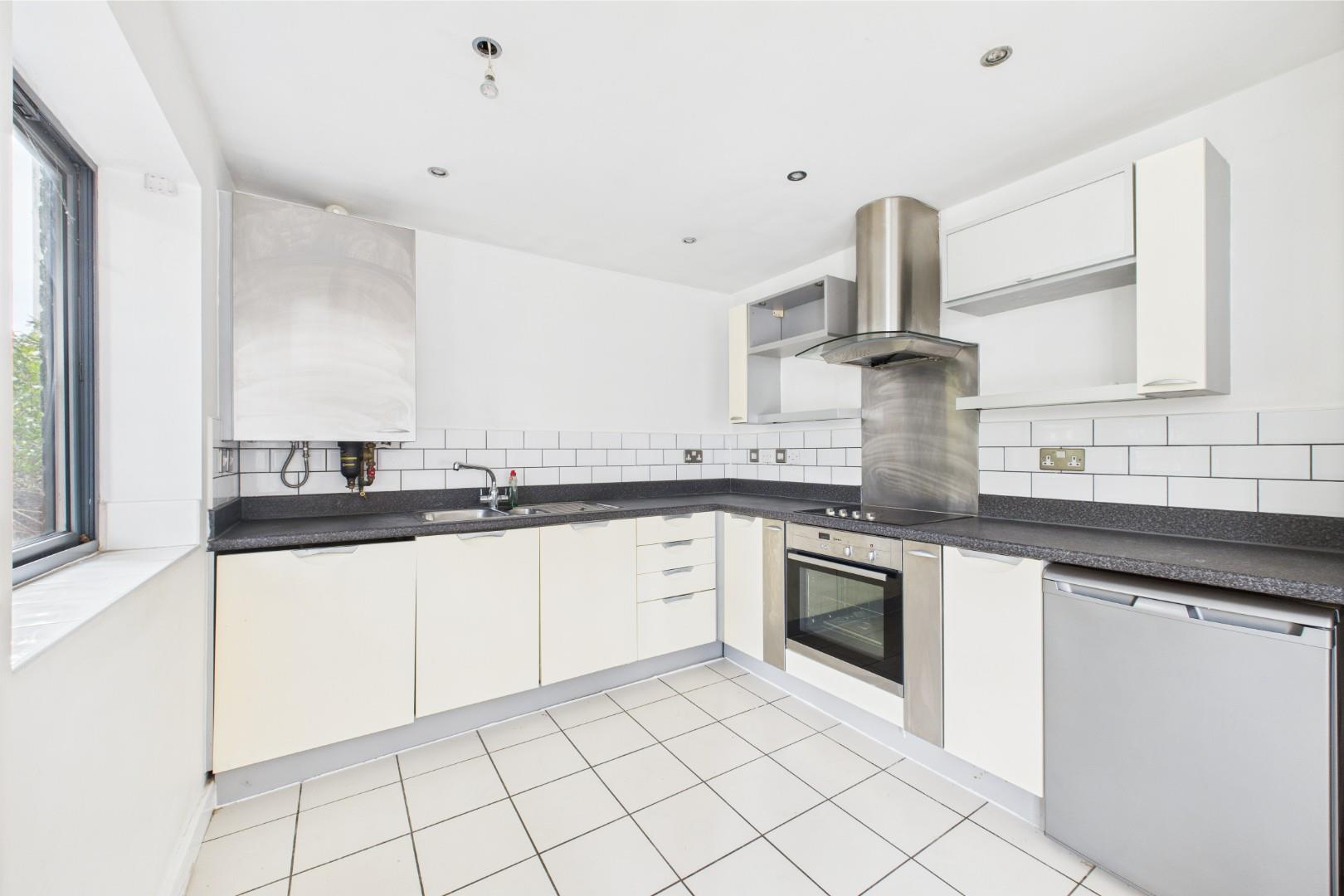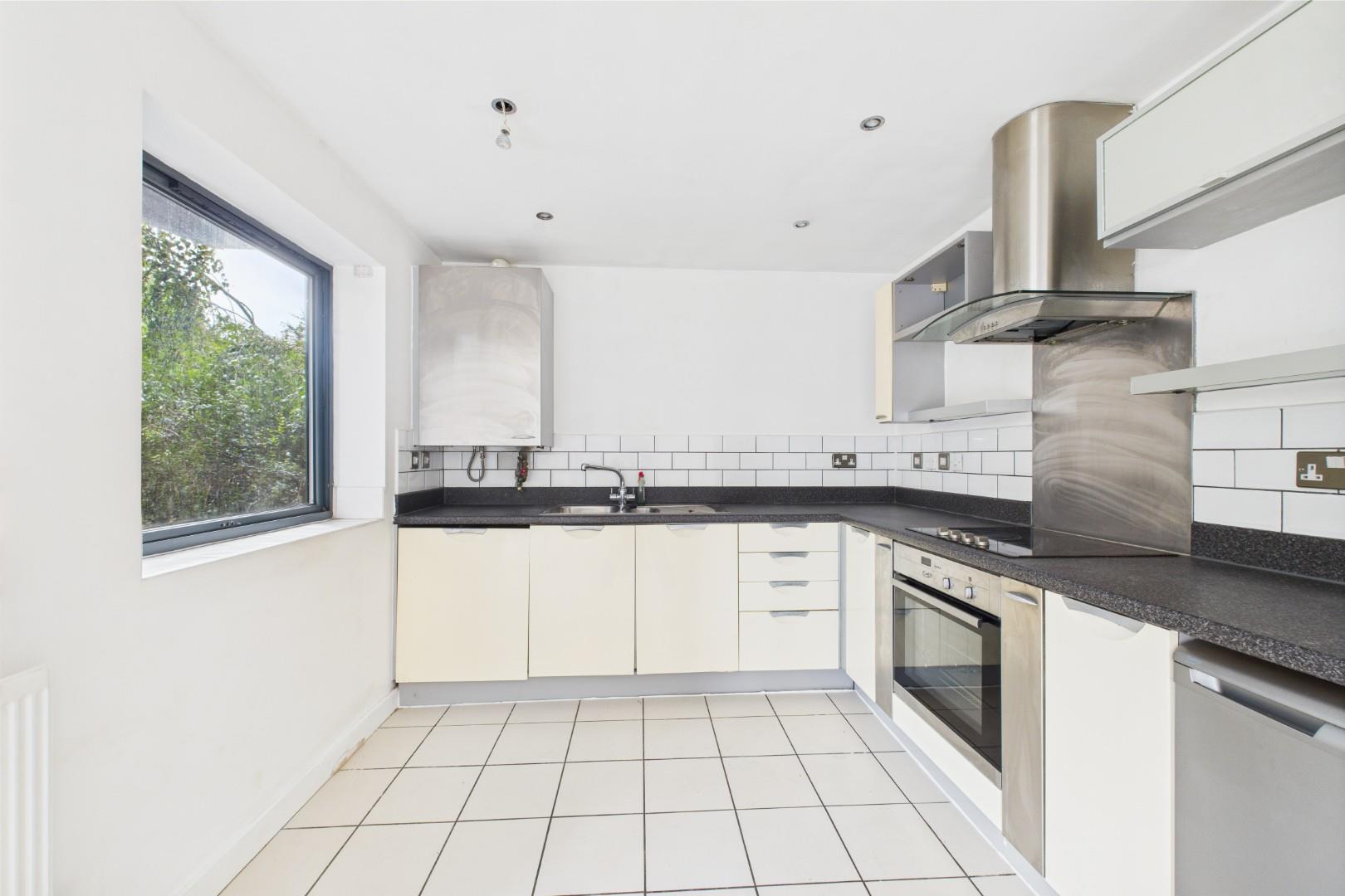 With a door leading from the entrance hall, fitted kitchen with a range of wall and base units with worktops, integrated oven and hob with stainless steel extractor hood and splashback, stainless steel sink with mixer tap and drainer, double glazed windows to the front and central heating radiators