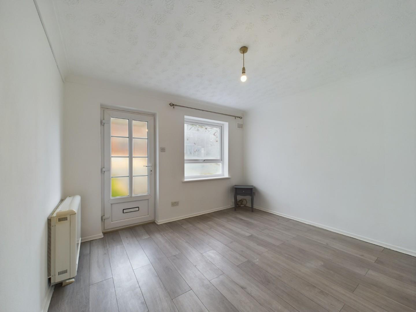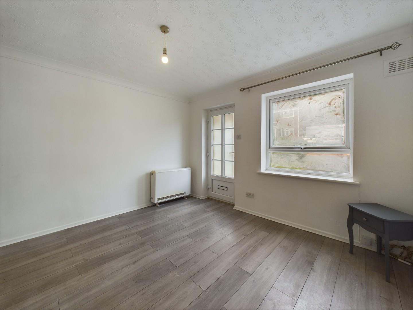 With a glazed UPVC door leading from the front, a door leading to the hallway, storage heater and a double glazed window to the front
