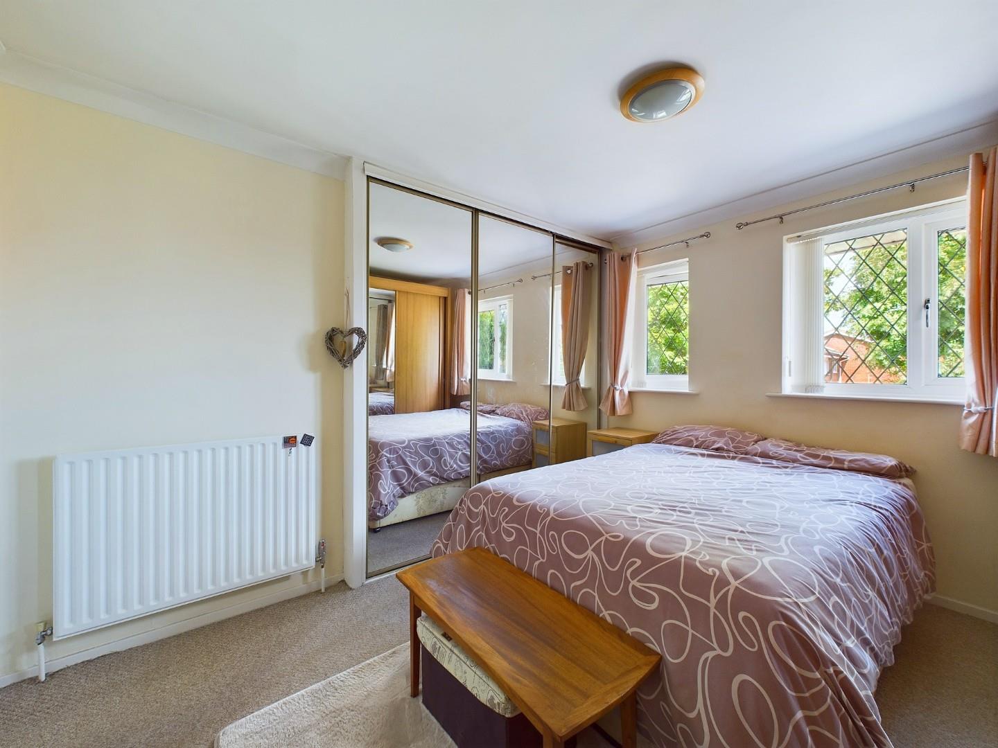 With a door leading from the landing, built in wardrobes to one wall, double glazed windows to the front and a central heating radiator