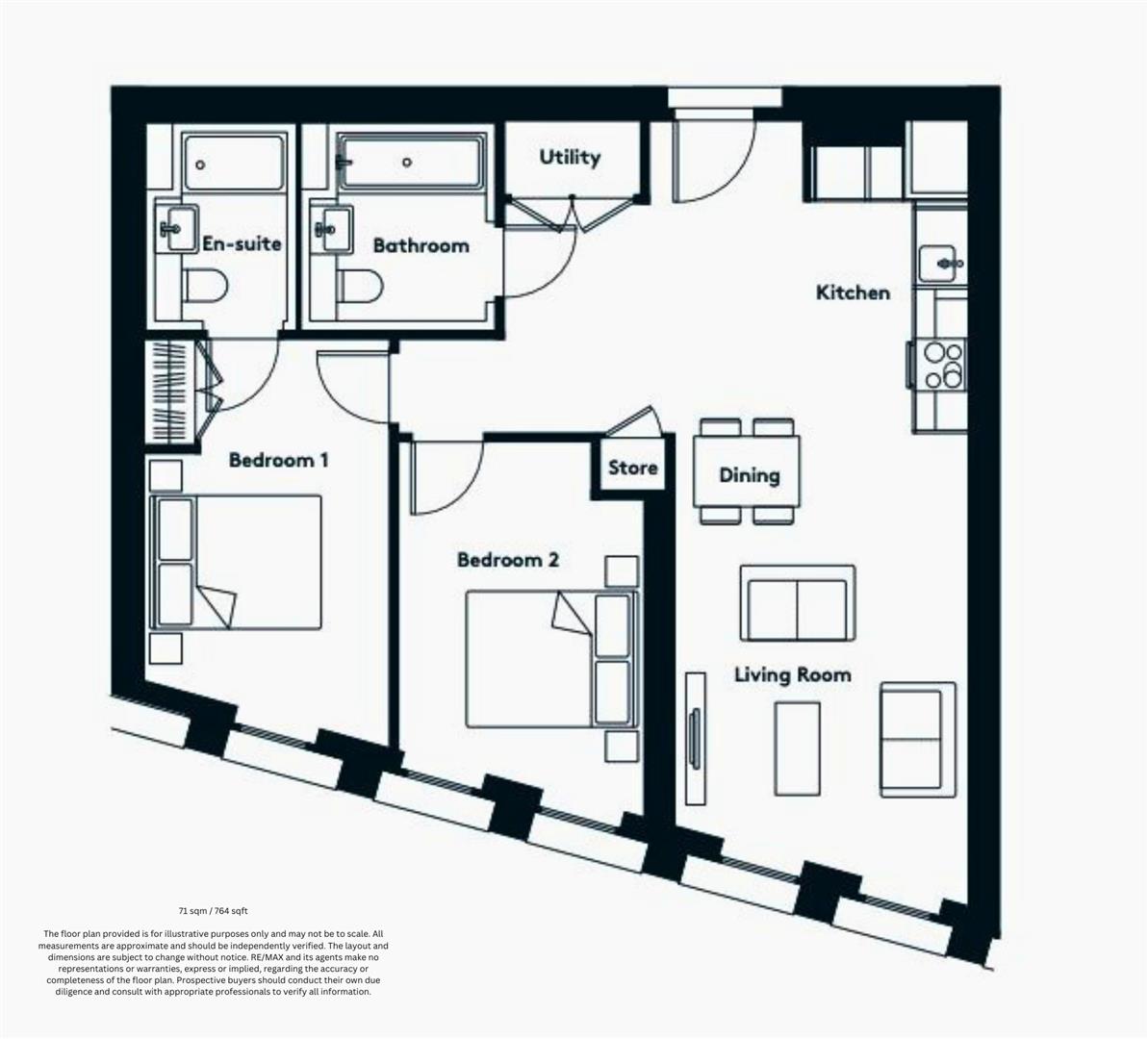 - 2 Bedrooms
