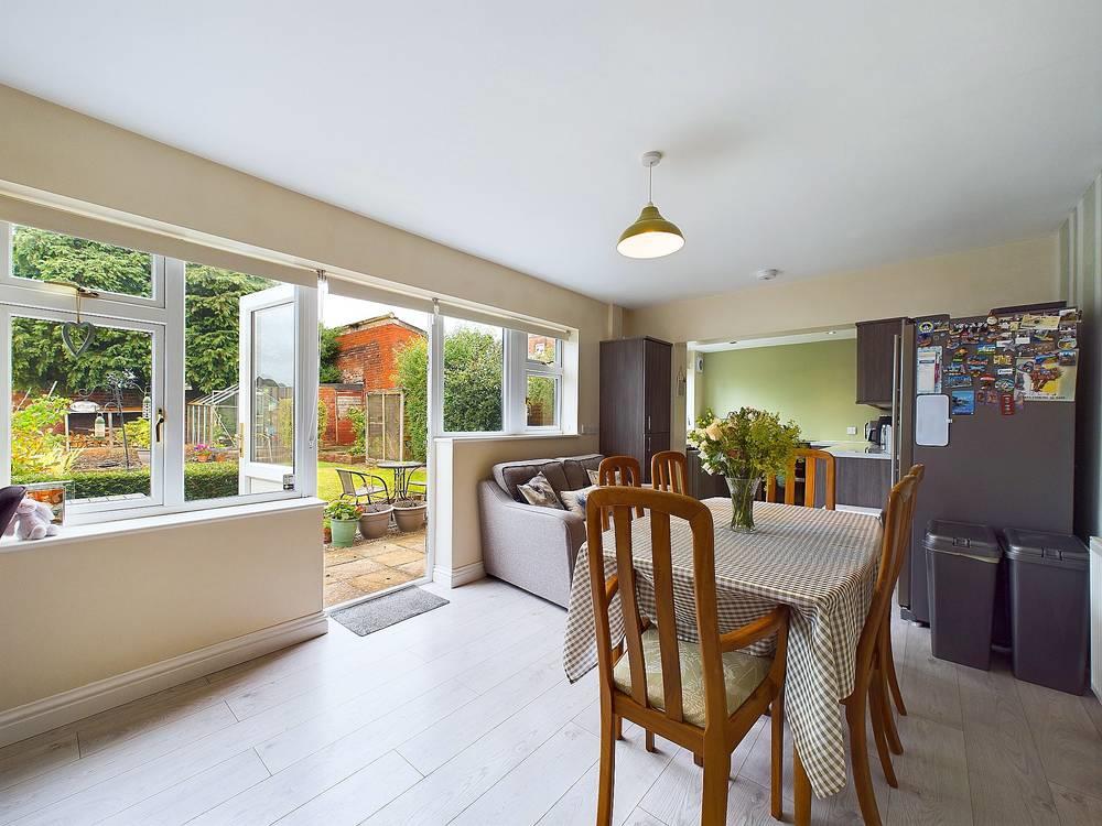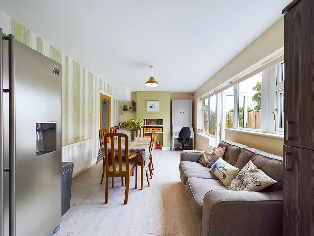 With a door leading from the lounge, open plan to kitchen, a door leading to the garden, double glazed windows to the rear and a central heating radiator