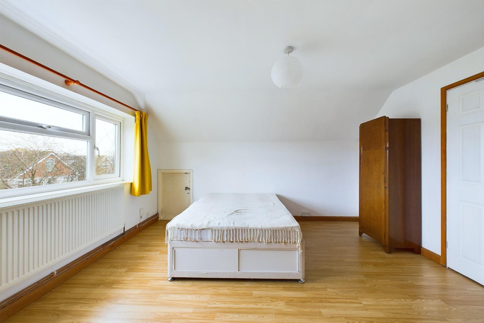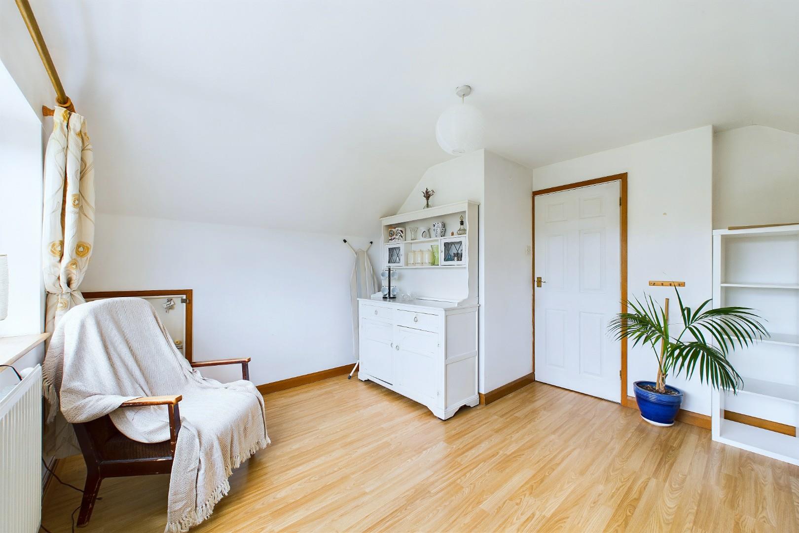 With a door leading from the landing, eaves storage to both sides, a double glazed window to the front and a central heating radiator