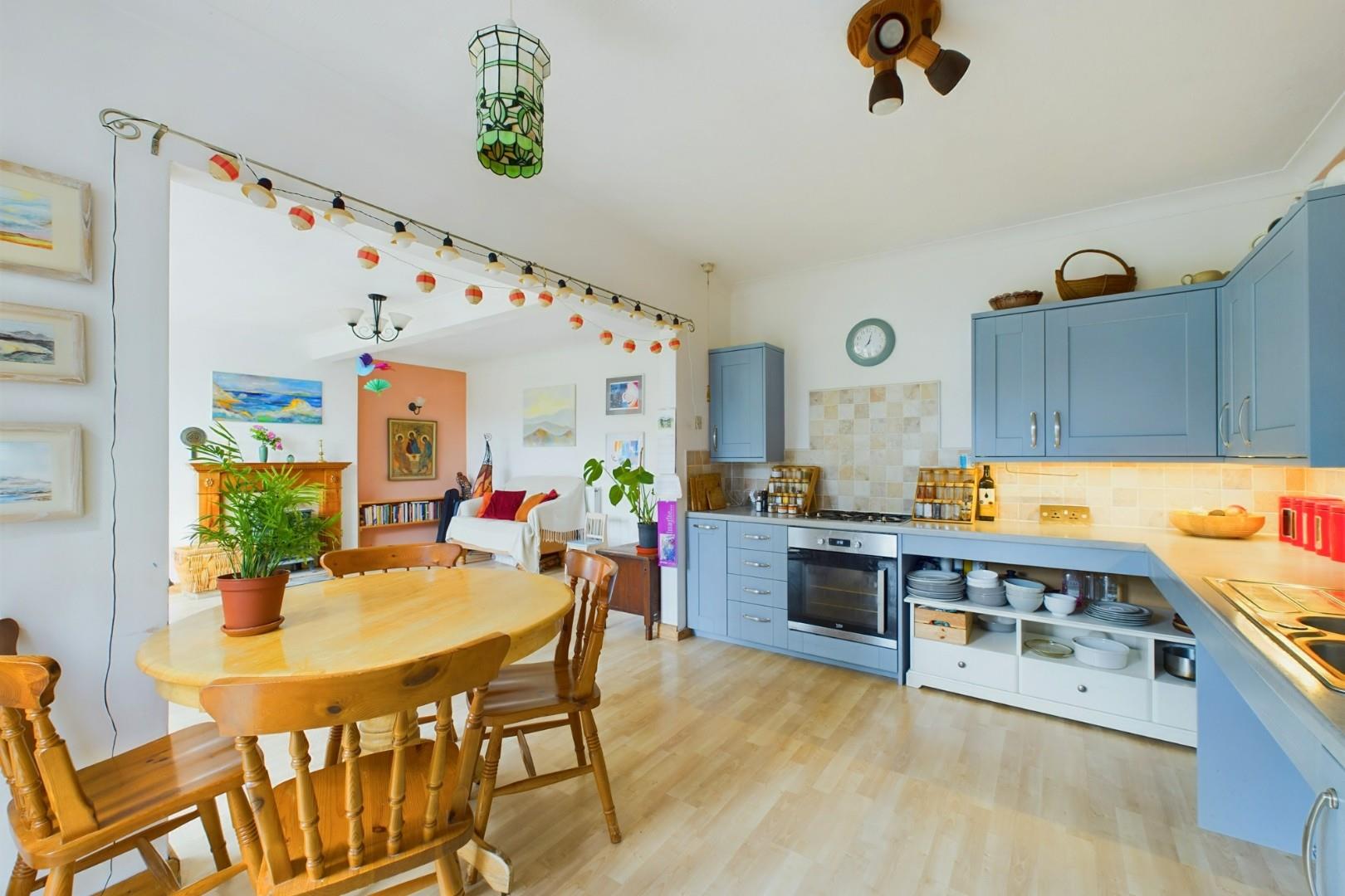With four bedrooms spread across 1,238 sq ft and a cosy open-plan living room featuring a log burner, this property offers ample space for comfortable living, and could be adapted to suit a range of living requirements. The first floor, for example, boasts a bedroom, bathroom, and a versatile room that previously served as a bedroom but has now been transformed into a kitchenette, offering flexibility to be used as a living room or kitchen as per your preference; as a result, the upstairs could independently accommodate a carer, or extended family.