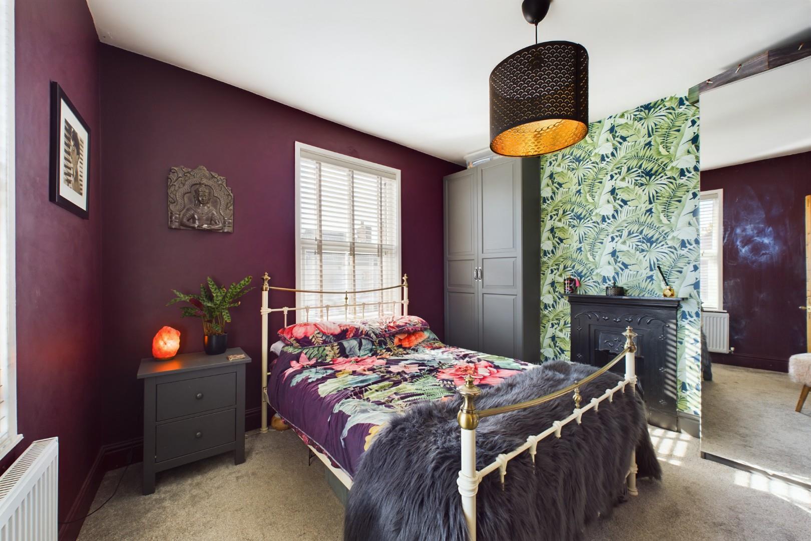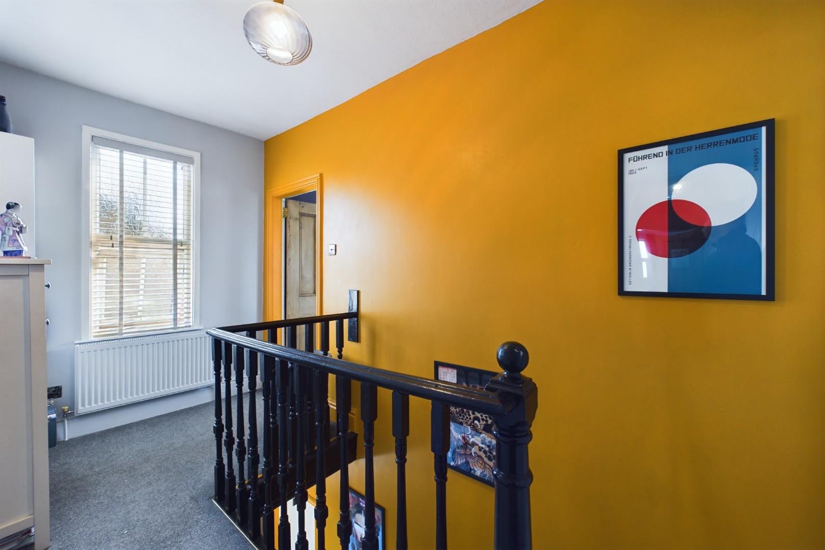 With a door leading from the landing, traditional fireplace, a central heating radiator and double glazed windows to the front and side