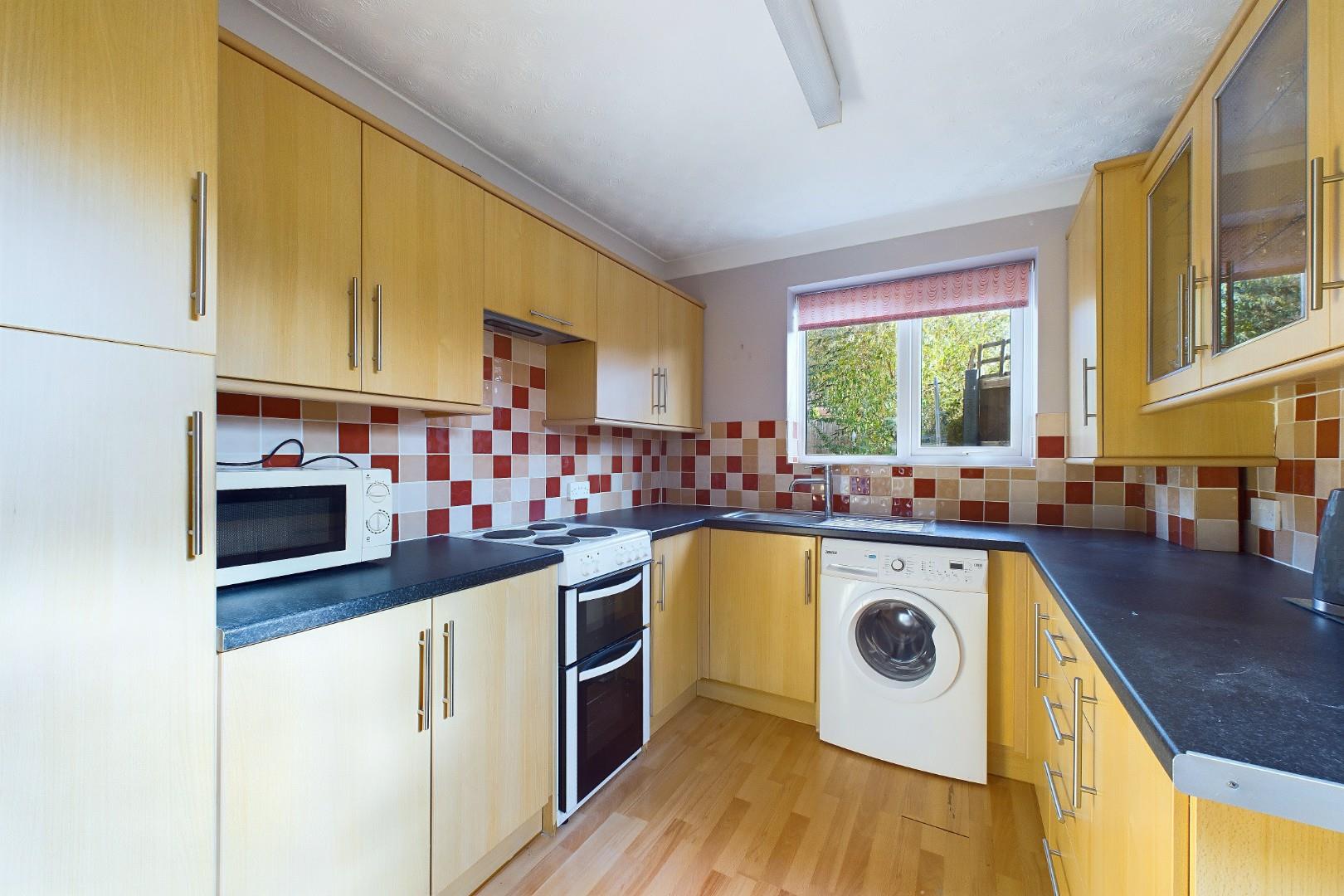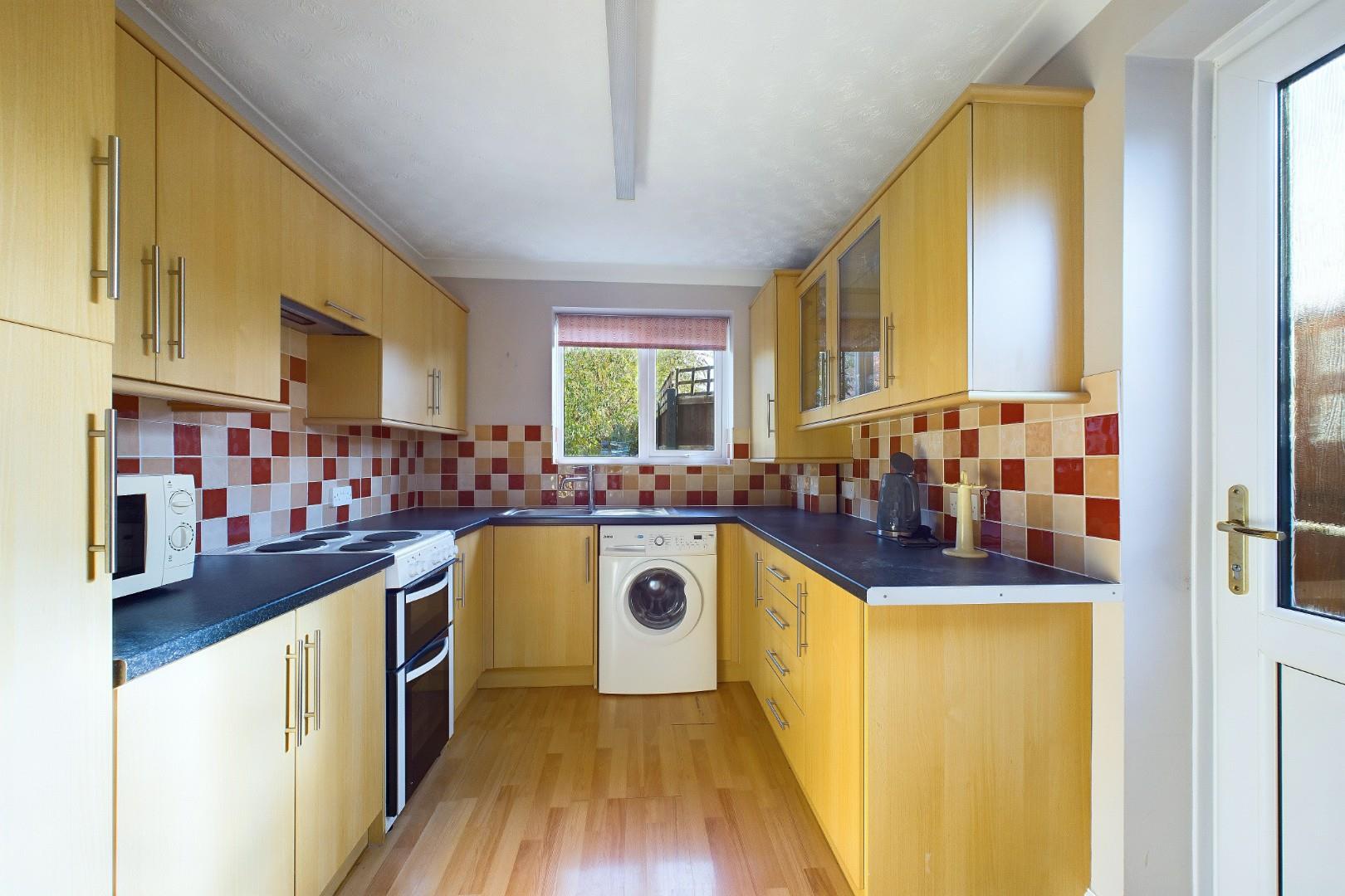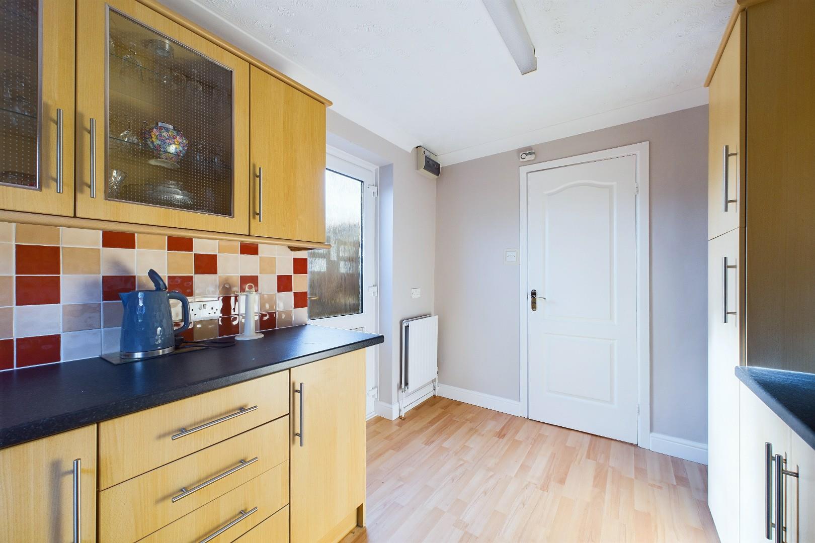 With a door leading from the living room, fitted with a range of wall and base units with worktops, extractor hood, utility outlet points, stainless steel sink with mixer tap, a UPVC door leading to the rear garden, a double glazed window to the rear and a central heating radiator