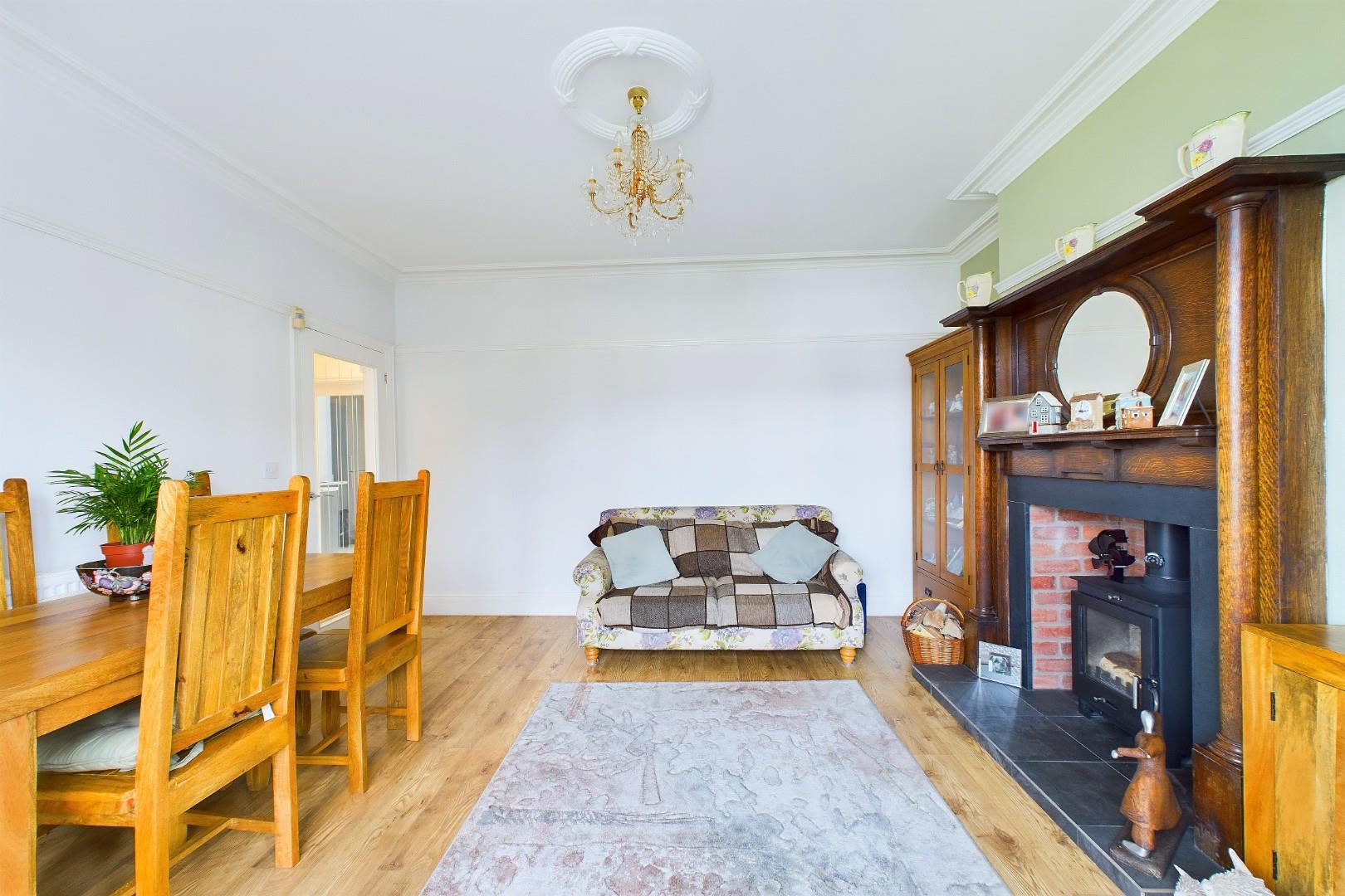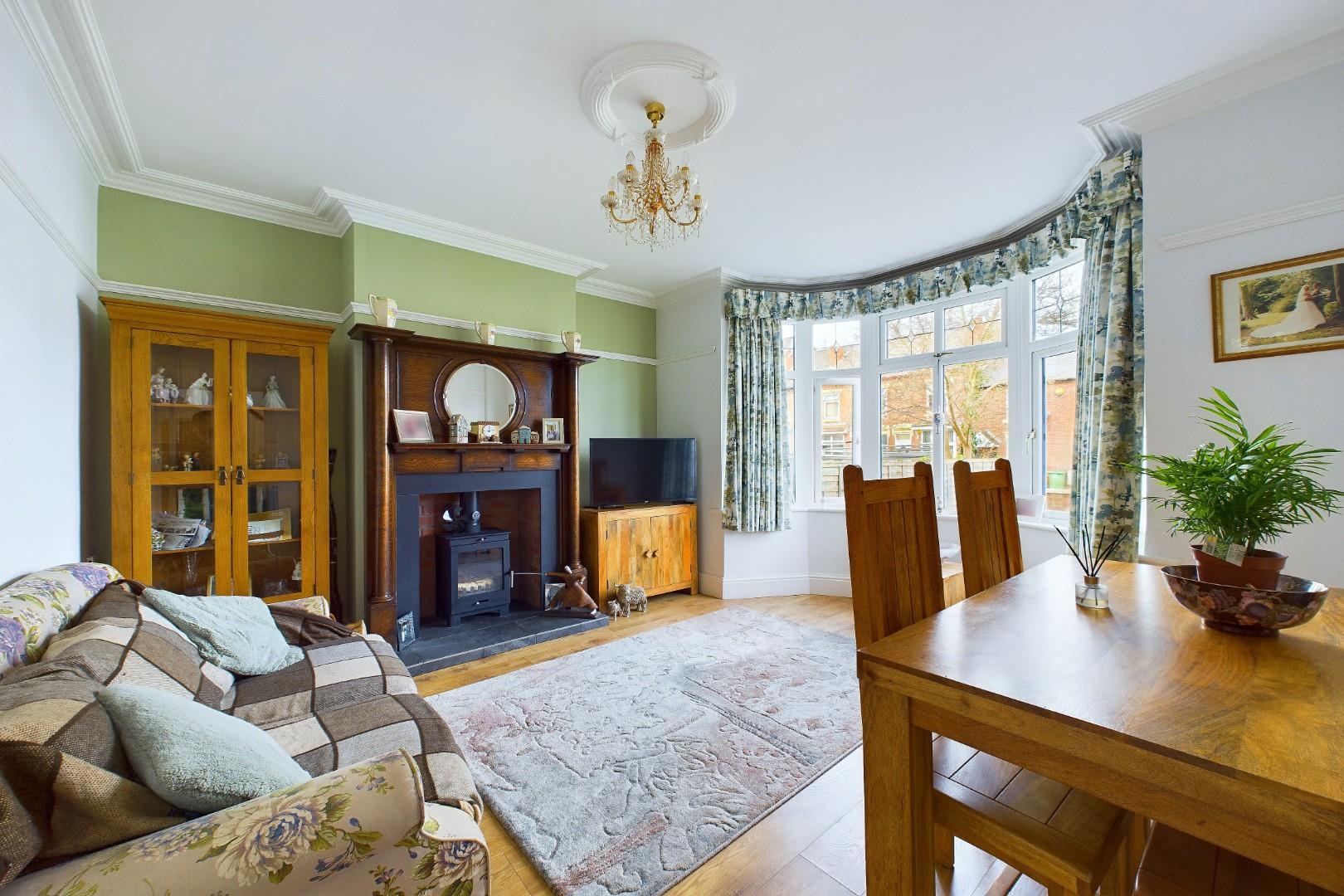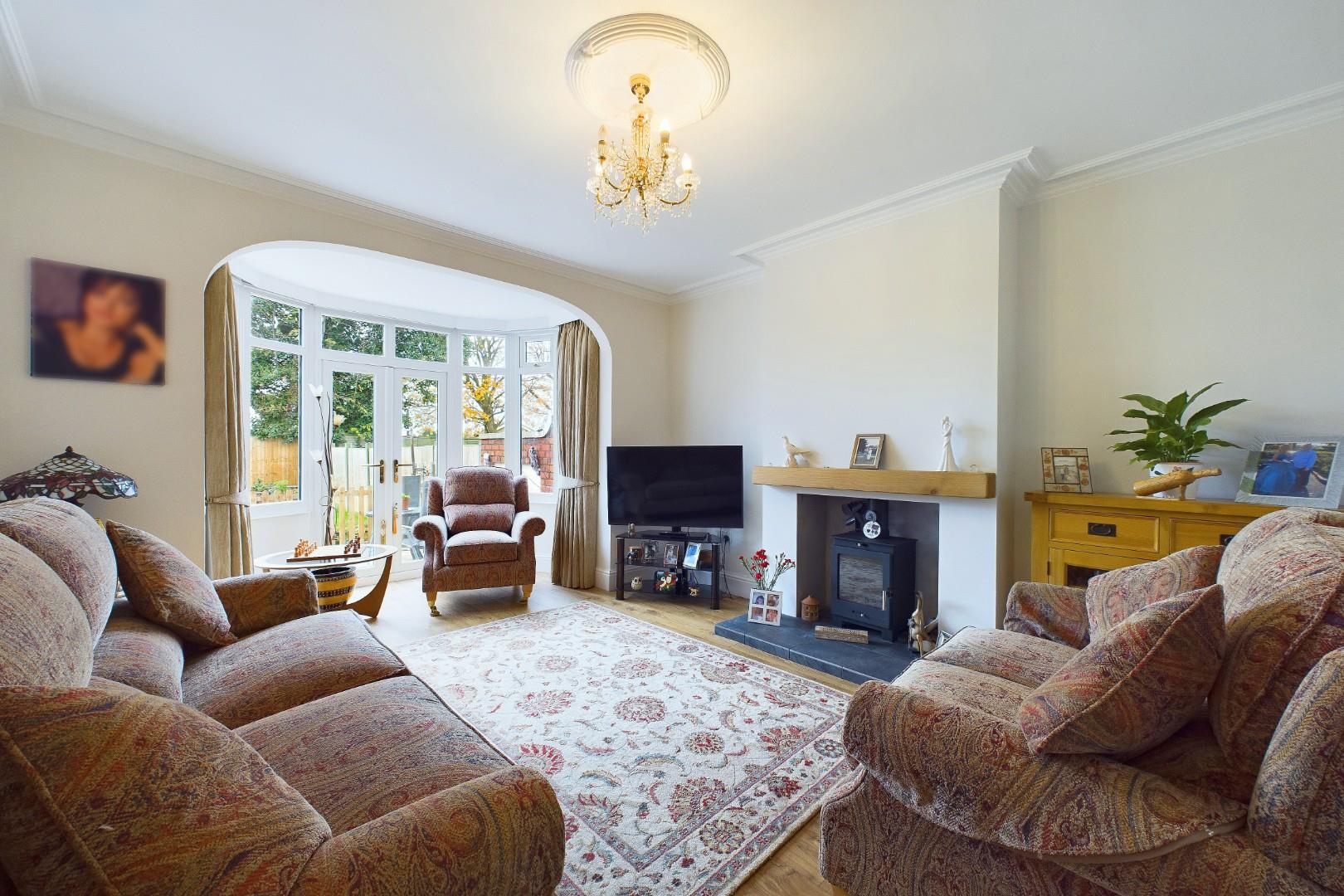 With a door leading from the entrance hall, solid fuel burning stove with hearth and original traditional style fire surround, a double glazed bay window to the front and a central heating radiator