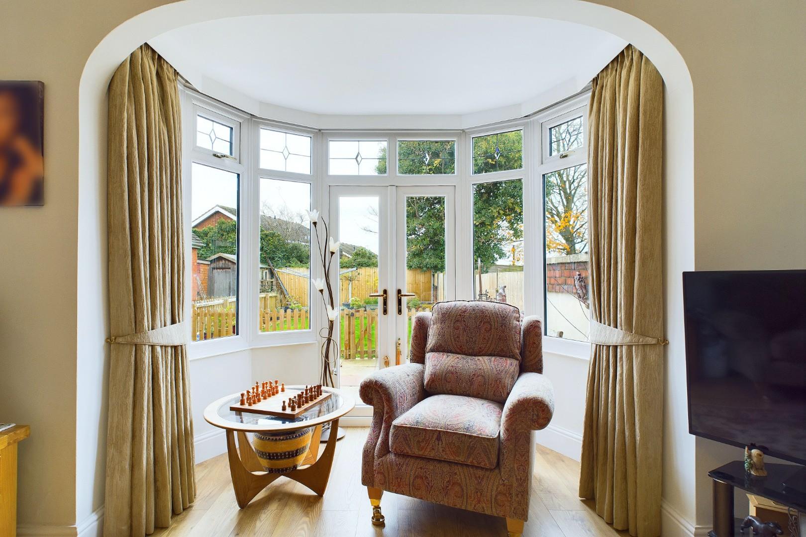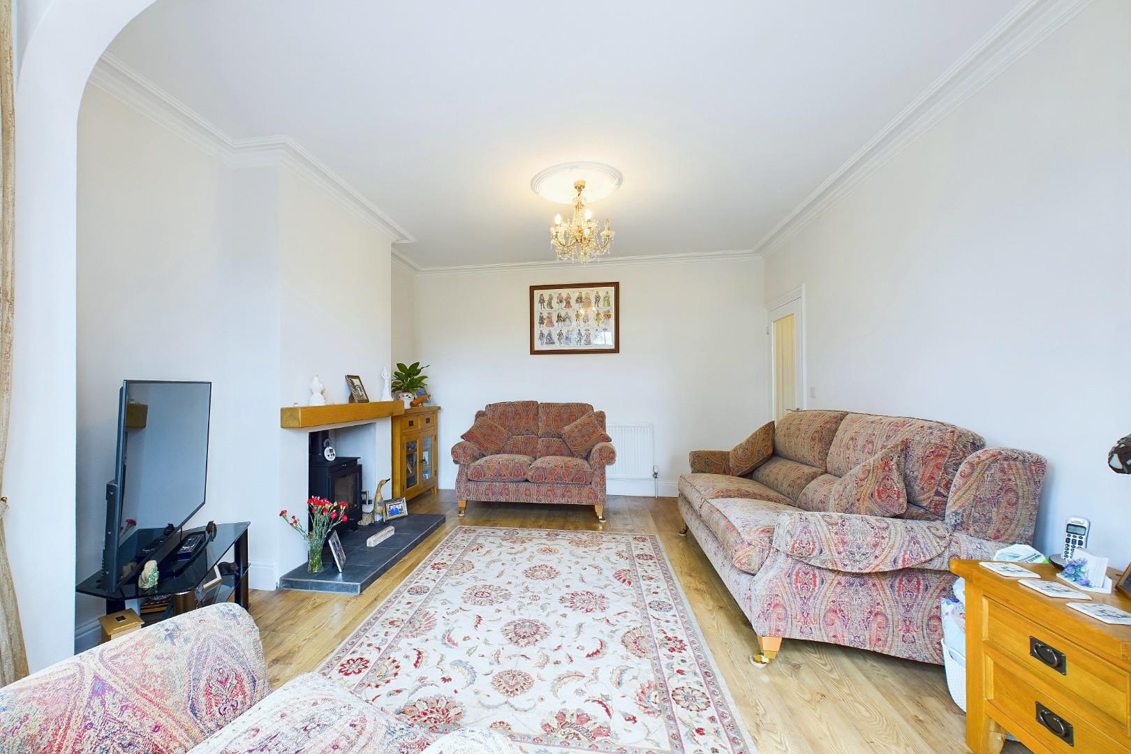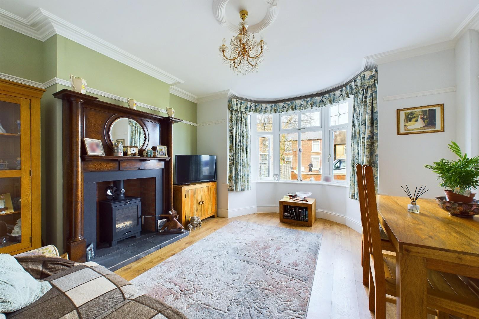 With a door leading from the entrance hall, solid fuel burning stove with hearth and original traditional style fire surround, a double glazed bay window to the front and a central heating radiator