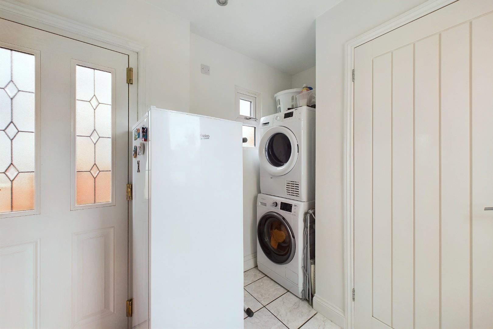 With a door leading from the kitchen, doors leading to the ground floor shower room, garden and driveway, laundry machinery outlet points, double glazed windows to the sides and a central heating radiator