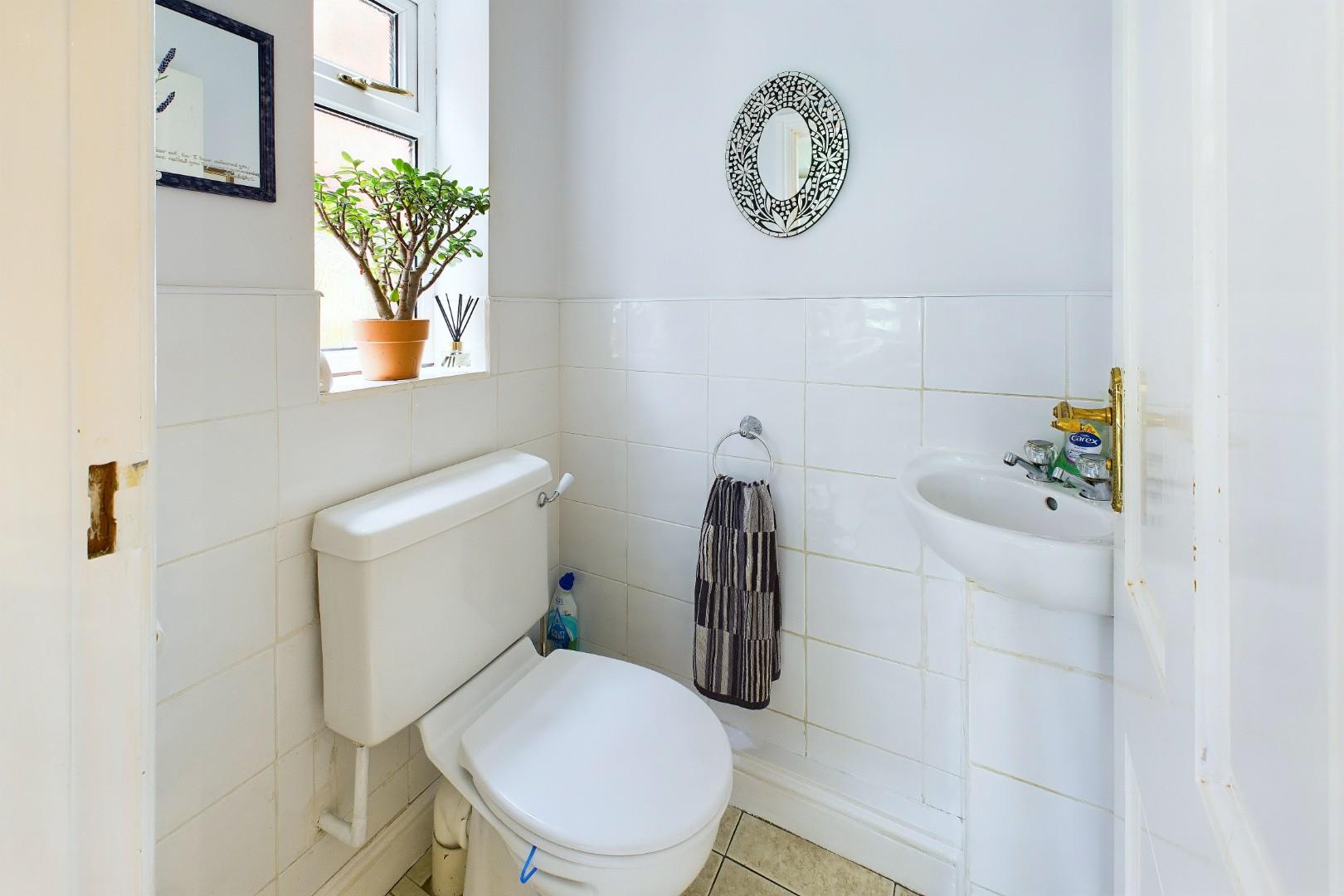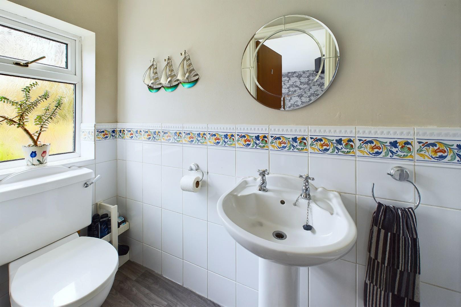 With a door leading from the utility, half heigh tile surround, WC, hand wash basin and a double glazed window to the side