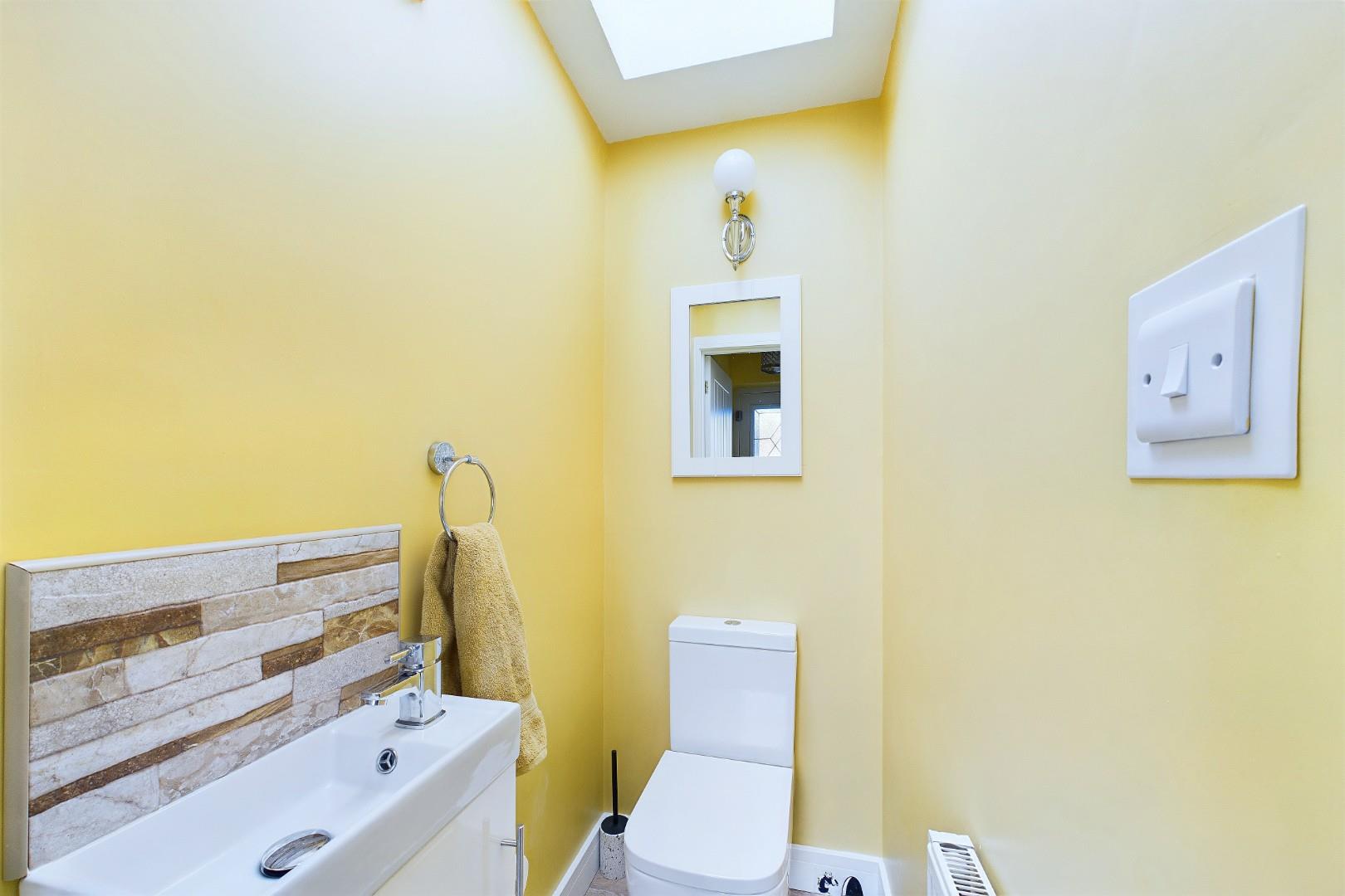 With a door leading from the entrance hall, WC, hand wash basin, skylight window and a central heating radiator