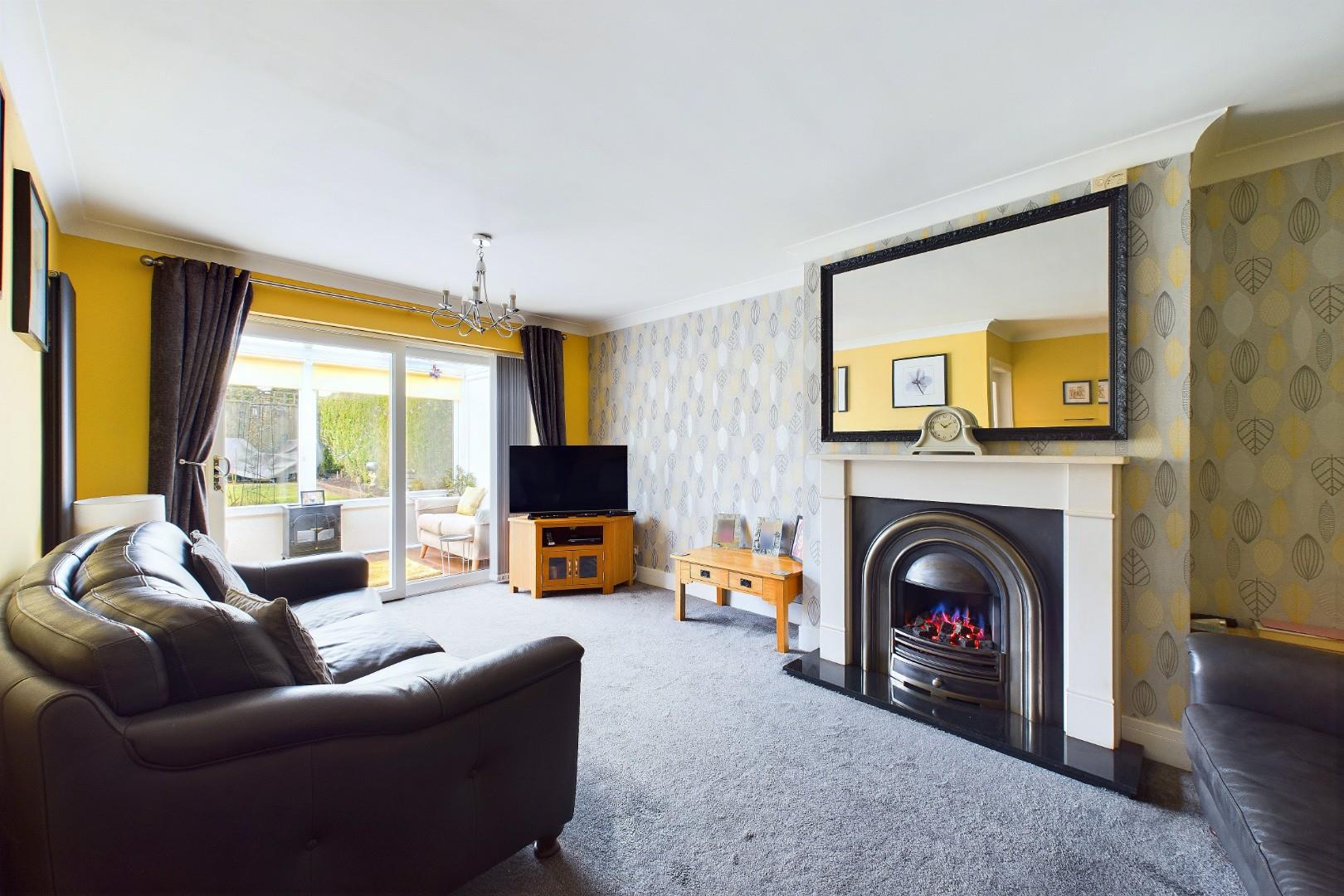 With a door leading from the entrance hall, a door leading to the kitchen diner, gas fireplace with decorative surround, a double glazed sliding door to the conservatory and central heating radiators