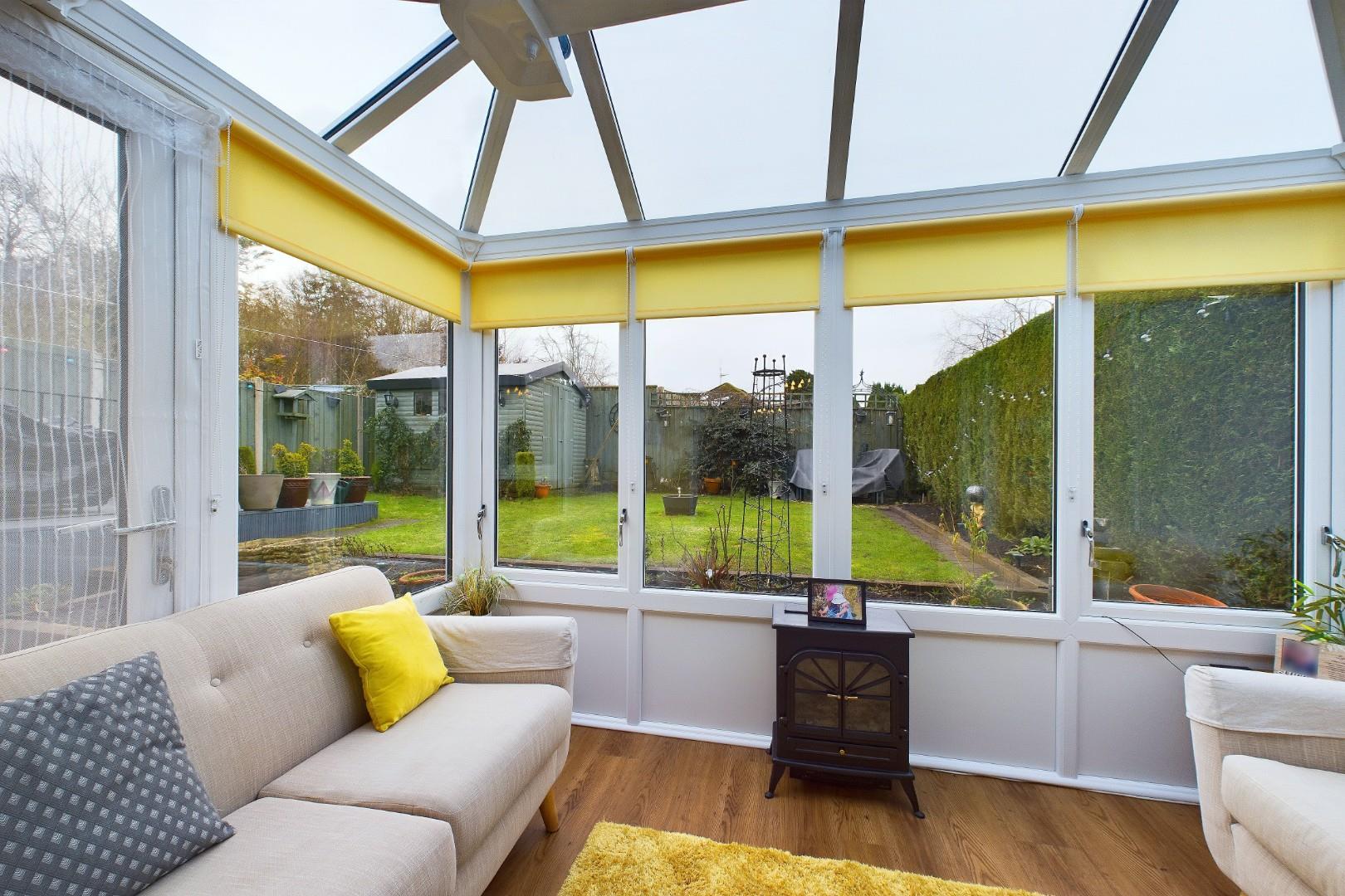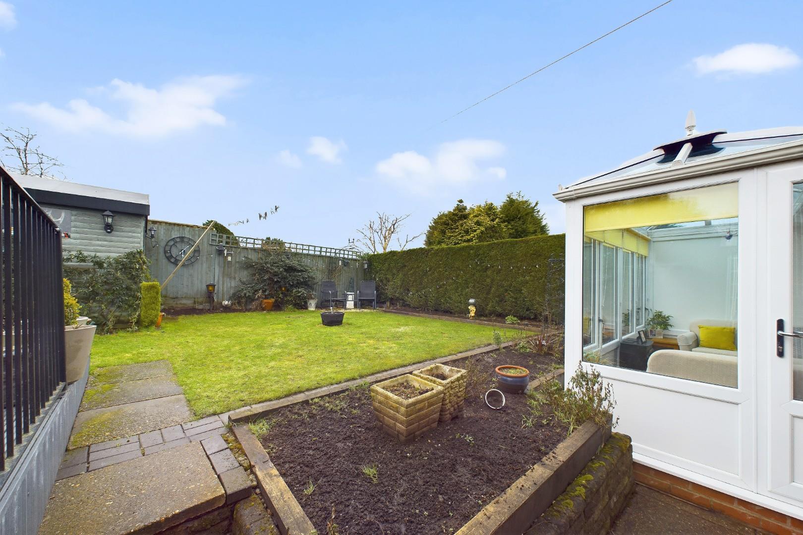 With a double glazed sliding patio door from the living room, double glazed windows to three sides, doors leading to the rear garden