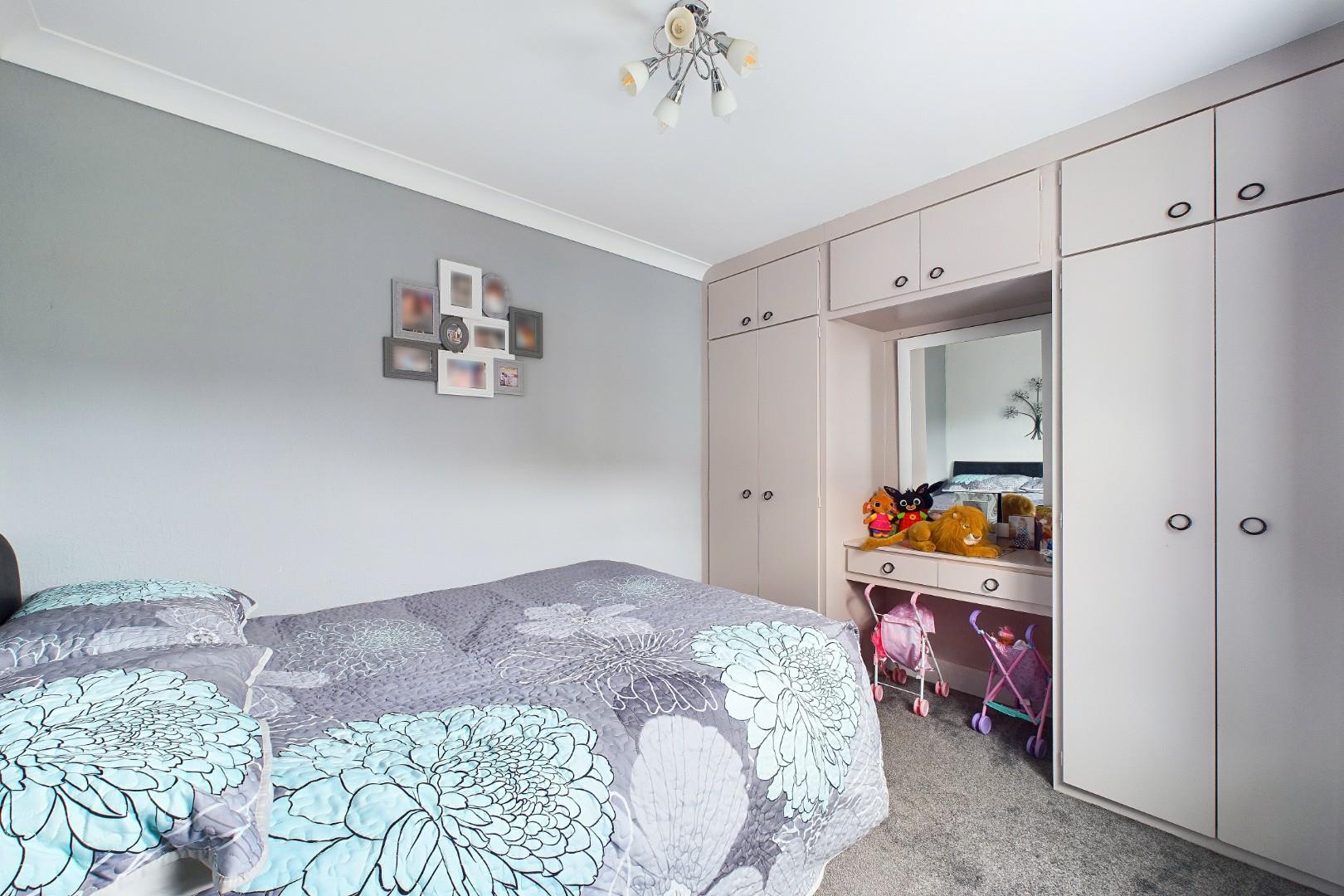 With a door leading from the entrance hall, fitted wardrobes with dressing table, a double glazed window to the side and a central heating radiator