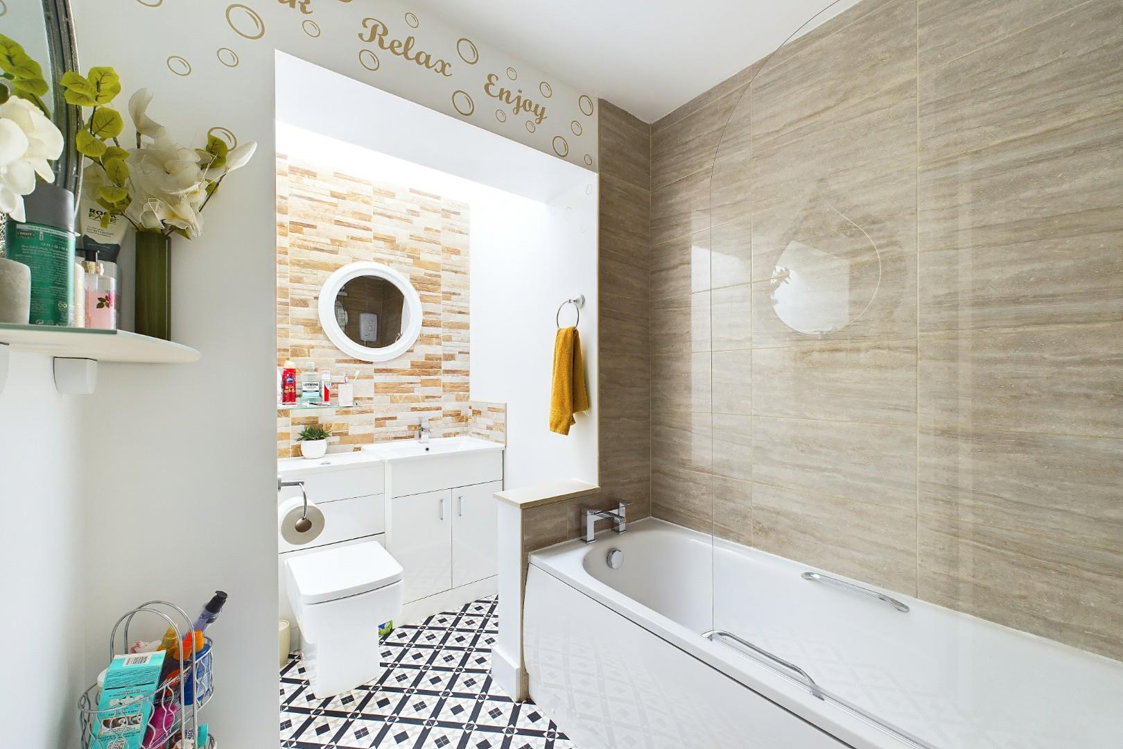 With a door leading from the entrance hall, WC, hand wash basin, bath with shower over, a double glazed skylight window in the ceiling and a central heating radiator