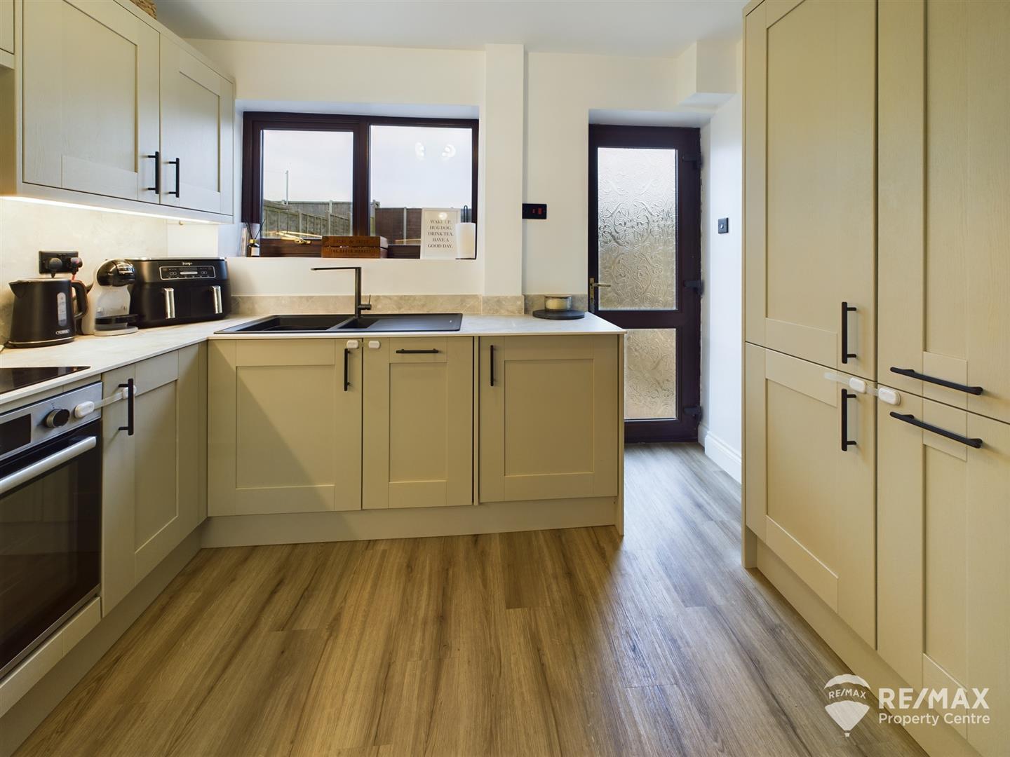 Newly fitted in 2022! fitted with a modern range of wall and base units, pull out pantry cupboard, sink & drainer, built in cooker, hob and extractor hood, integral dishwasher, integral washing machine, space for fridge/freezer, with window overlooking the rear garden and back door allowing access to the rear.