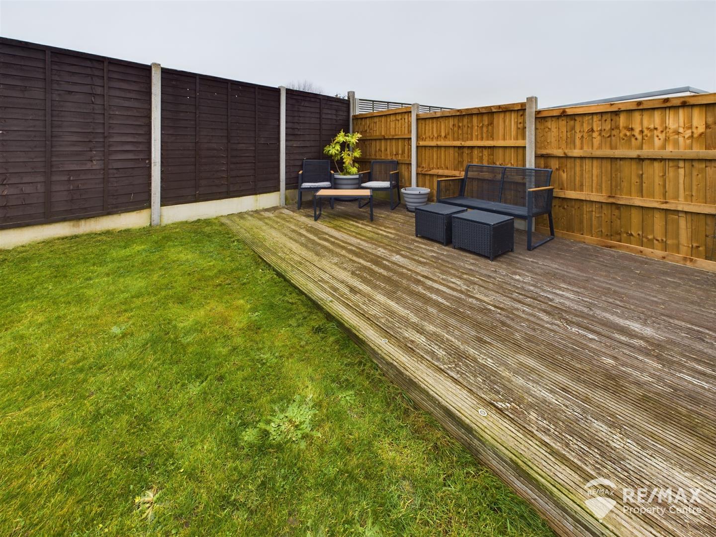 The generous rear garden is fully enclosed and backs onto a recreational field/play park so not overlooked at all!