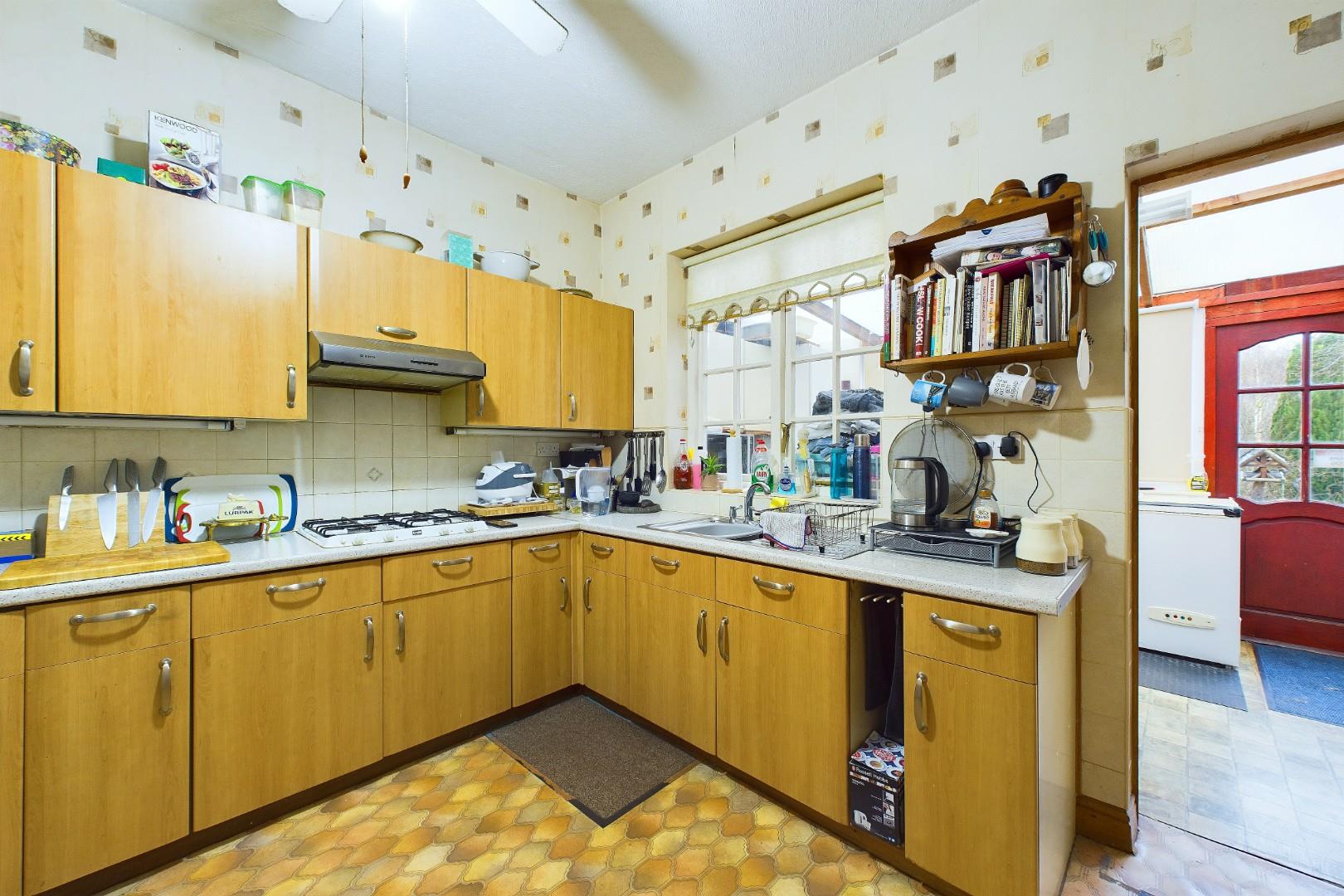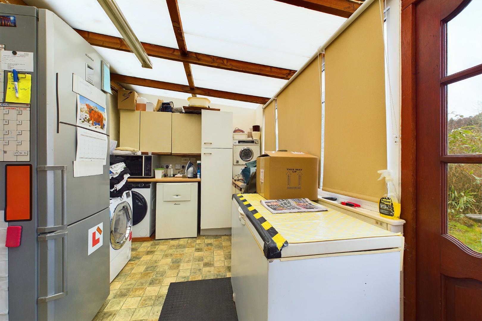 With a door leading from the kitchen, a door leading to the sun room, double glazed windows to the rear and a door offering access to the garden