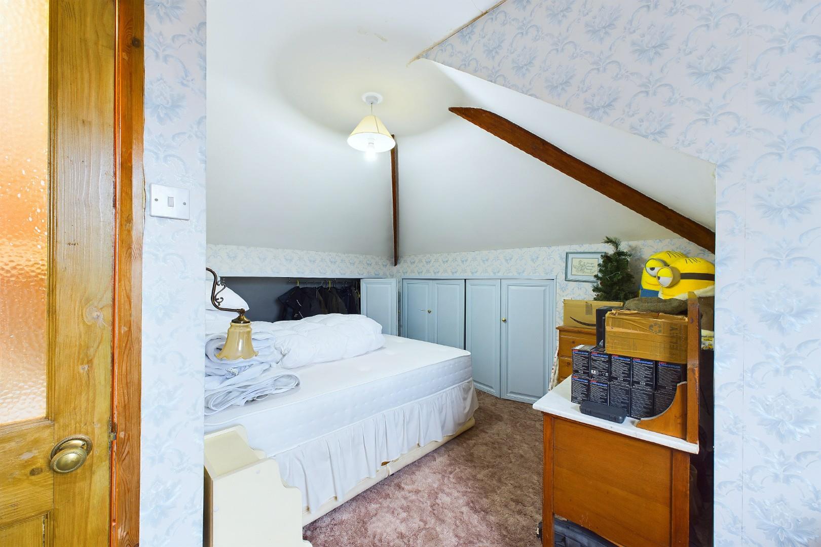 With a door leading from the landing, eaves storage, a double glazed dormer window to the side and a central heating radiator