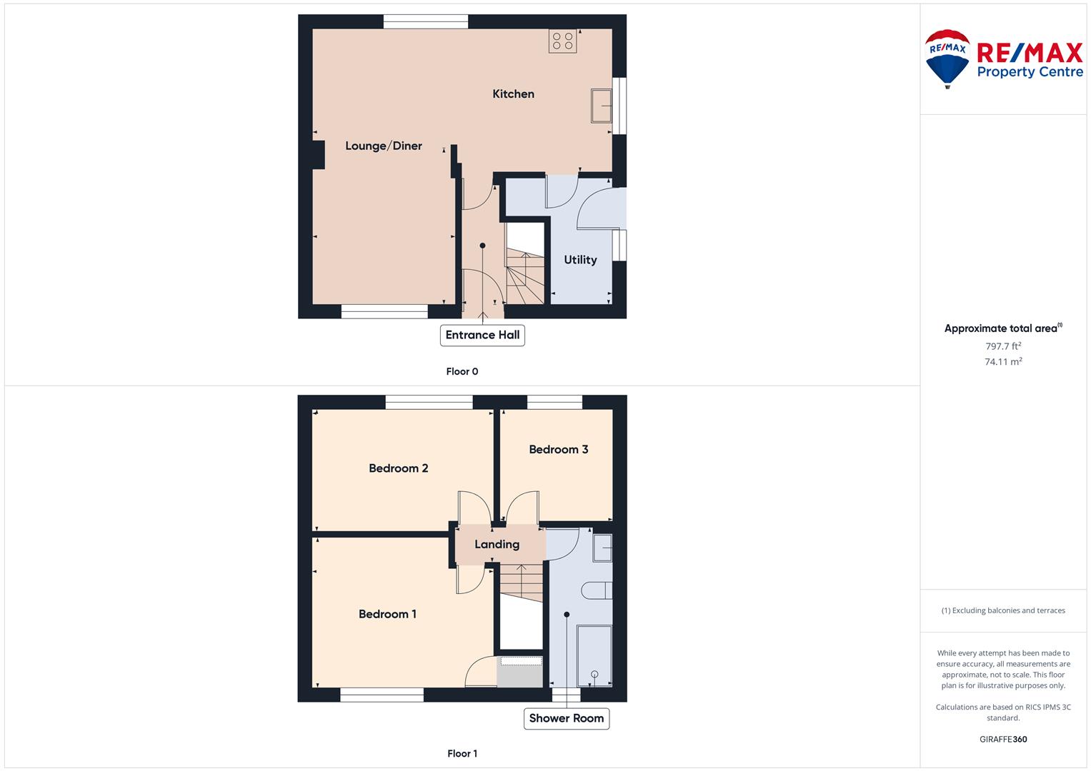 Loft access hatch (boarded) and doors to all 3 bedrooms and shower room